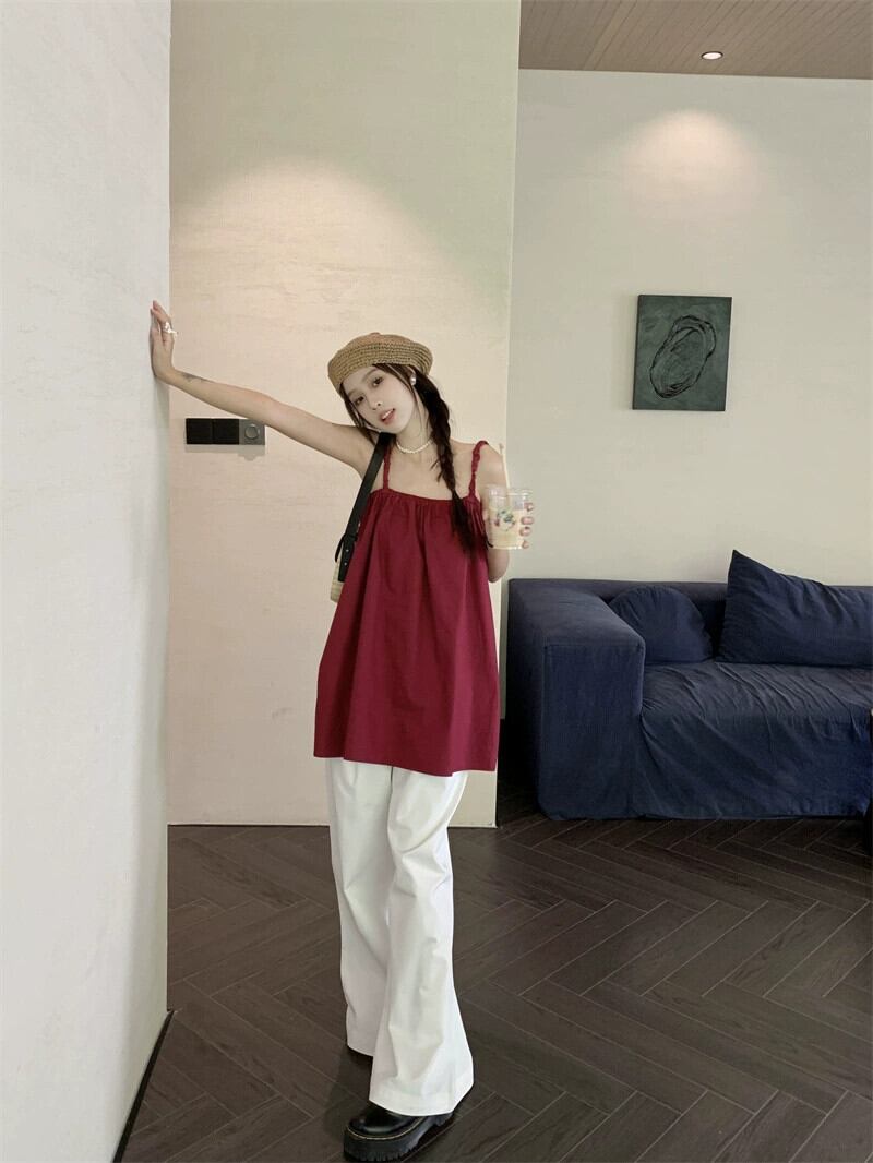 夏バージョン 2023 新しいカジュアルルーズファッションオールマッチバックストラップサスペンダーシャツトップ女性のシック サマー 夏物 missk45665682884