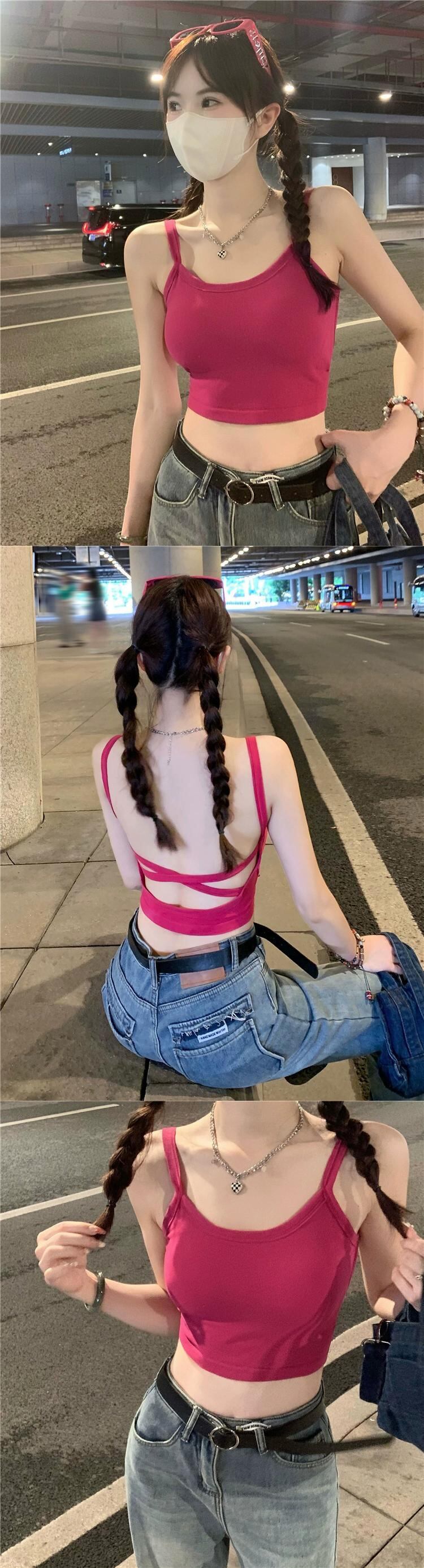 甘くてスパイシーなバックレスクロスベスト女性の夏の新しい純粋な欲望セクシーなスリムショートセクション内外着用キャミソールトップ潮 大人ガーリー スウィート キュート カジュアル サマー 夏物 ピュア missk11049599798