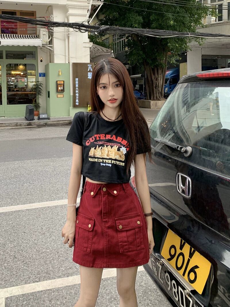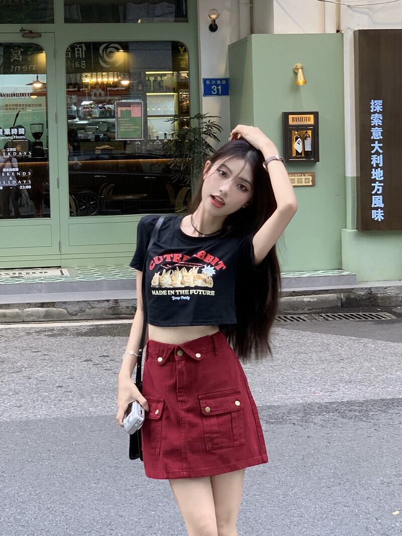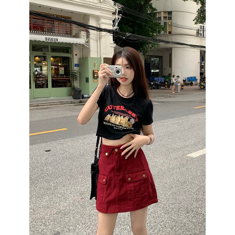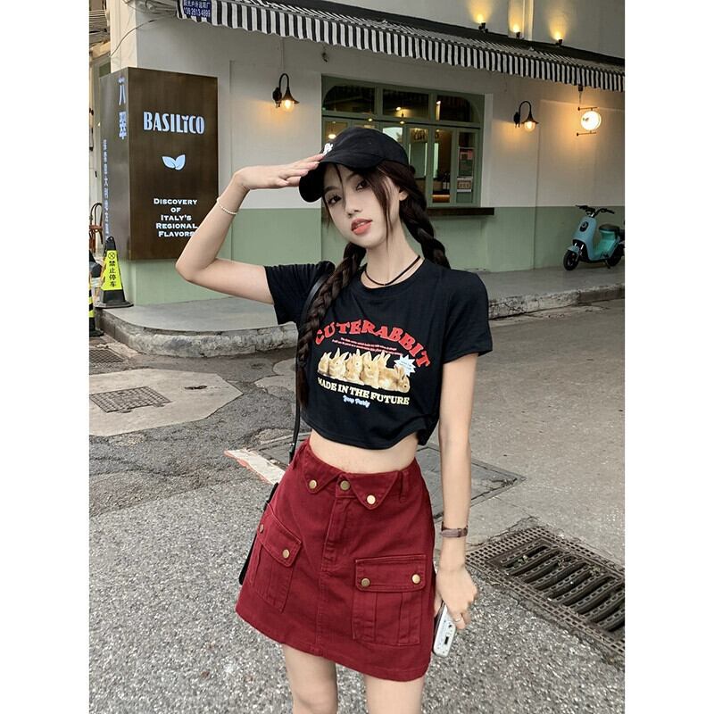 ホットスタイル半袖 Tシャツの女性の夏の新バージョンの漫画プリントショートセクションスリムブラックショルダートップシック サマー 夏物 missk21091235982