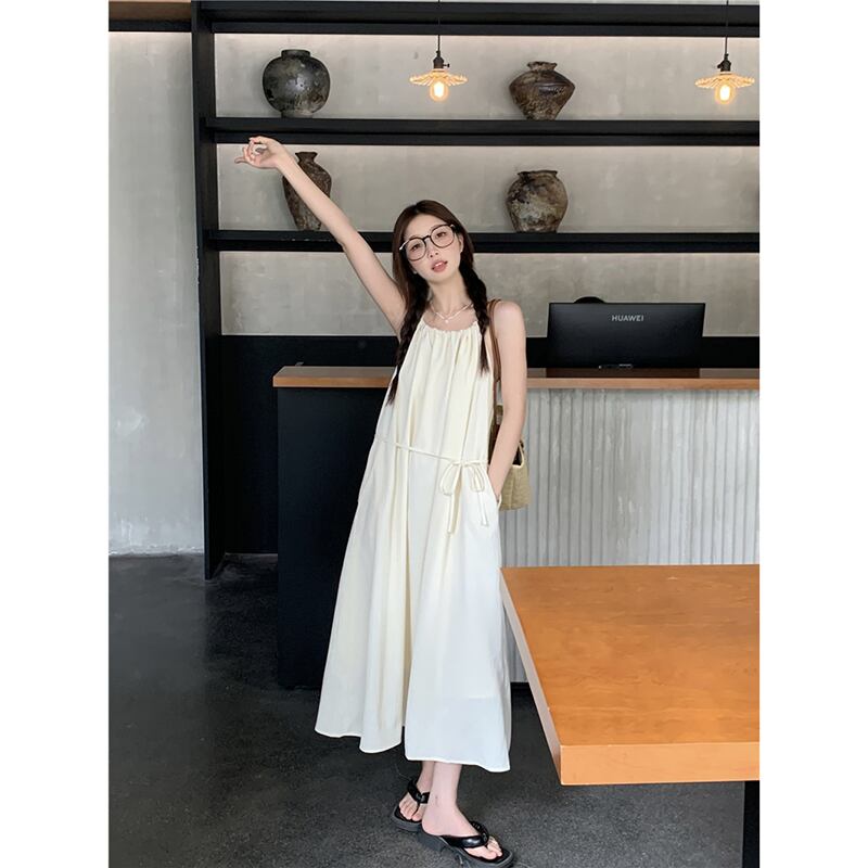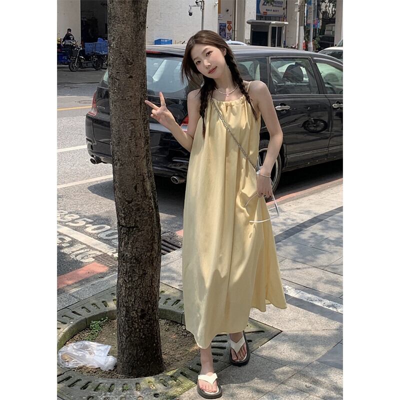 ホリデースタイルハンギングネックサスペンダードレスレディース夏新レトロルーズアウター一言ビッグスイングロングスカートトレンディ サマー 夏物 missk14785935263