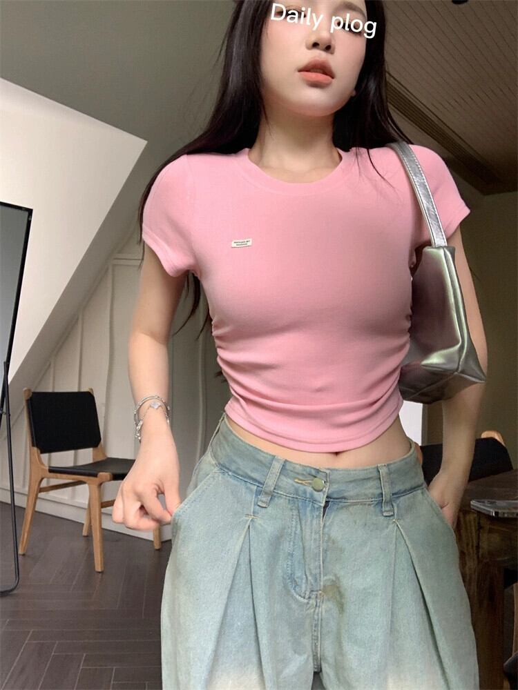 ホットスタイル巾着半袖 Tシャツ女性の夏の新しい純粋な欲望気質自己修養マシンショートシックなショルダートップ サマー 夏物 ピュア missk89536182627