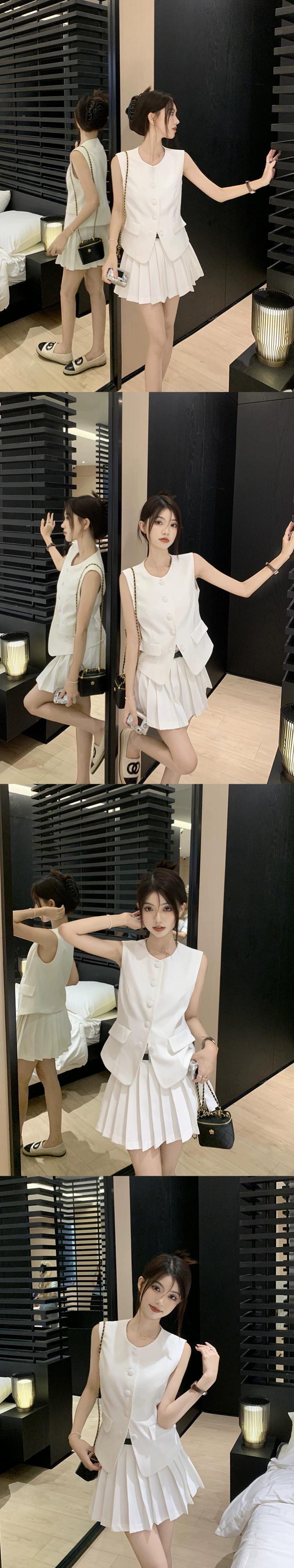 -エンド社交家ノースリーブスーツベストハイウエスト痩身プリーツスカート女性の夏の 2022 新しいファッションスーツ ハイウェスト サマー 夏物 missk81413324529
