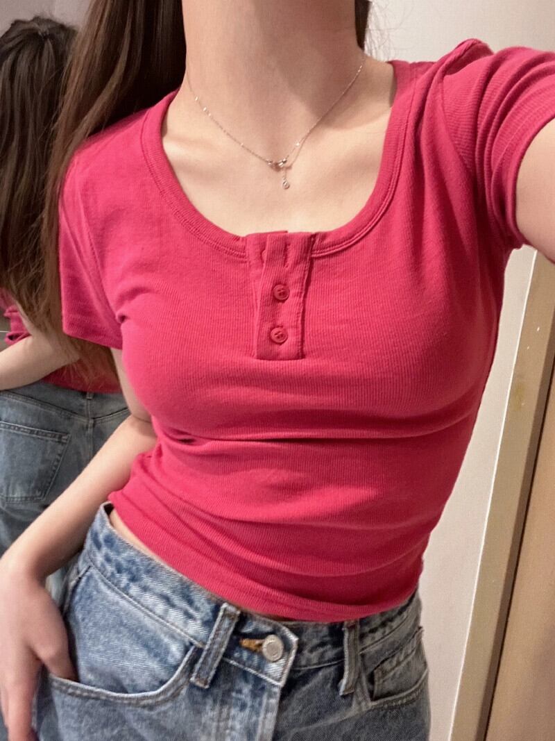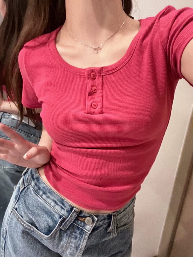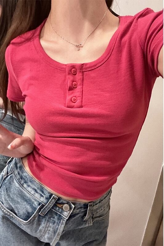 純粋な欲望のフロントショルダー半袖 T シャツの女性の夏の新しいバージョンの自己修養と薄いショート デザインのオールマッチ トップス サマー 夏物 Tシャツ missk51872121813