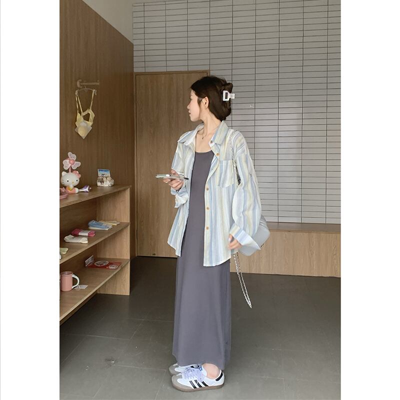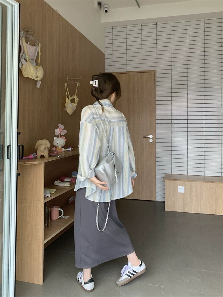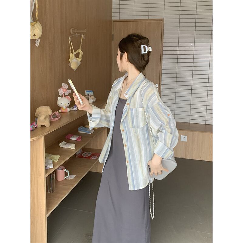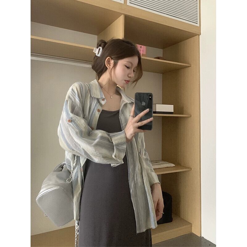レイジーウィンドストライプ長袖日焼け止めシャツ女性の夏の新バージョンルーズで多用途な薄手のコートカーディガントップ ロング サマー 夏物 missk56803369991