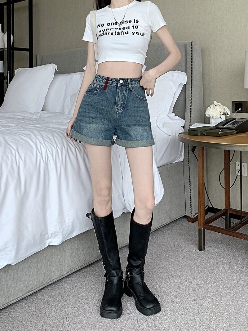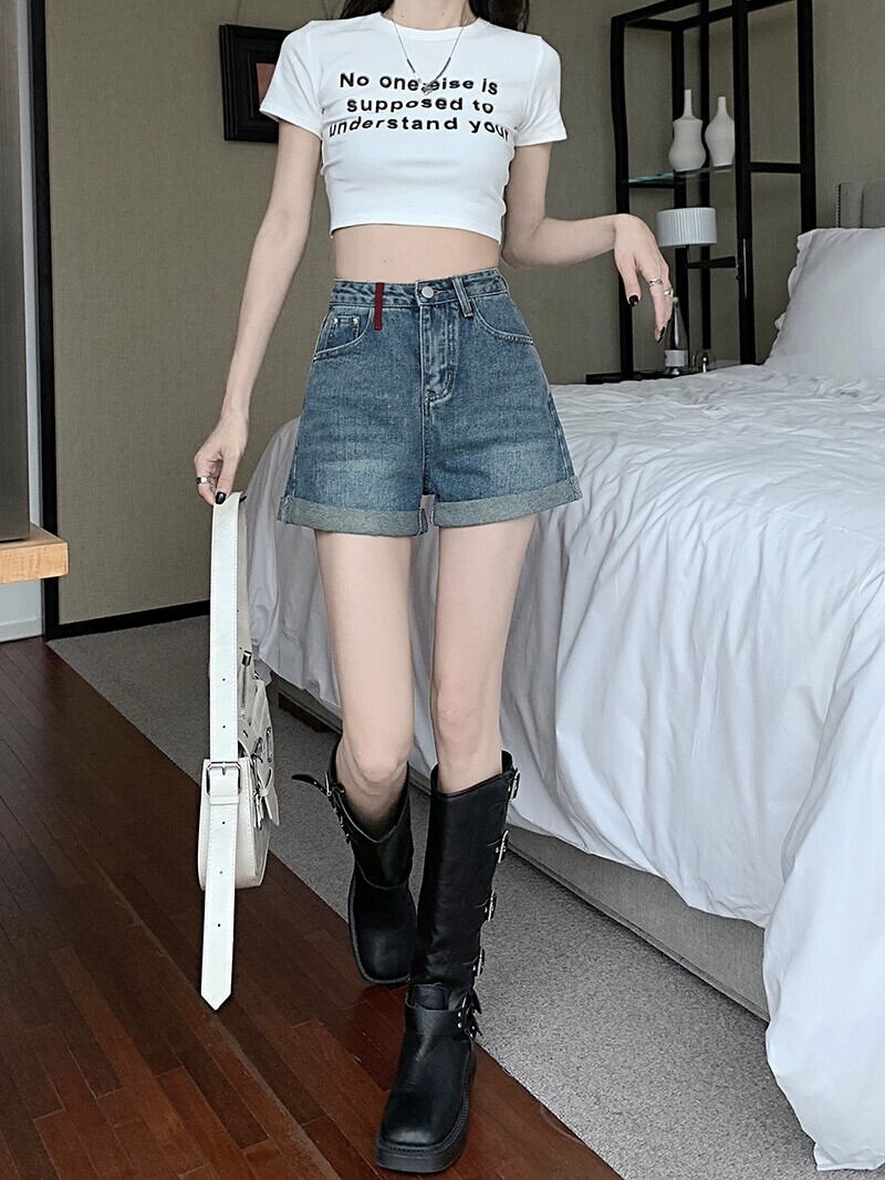 カールワイドレッグデニムショートパンツレディース夏新作ハイウエストデザイン感覚ニッチウォッシュAラインストレートパンツ サマー 夏物 ショーツ ブルマー missk32622753379