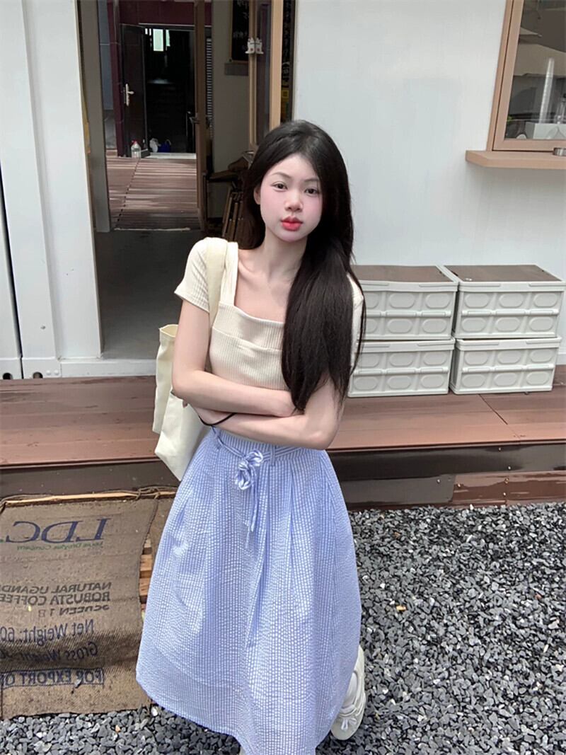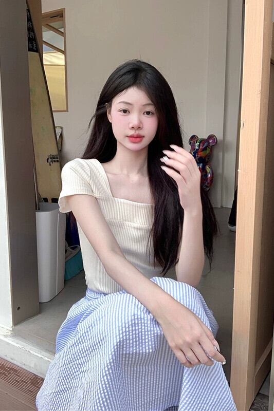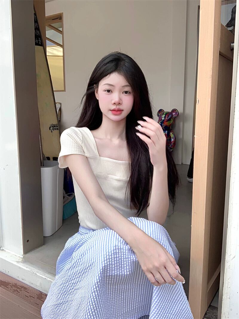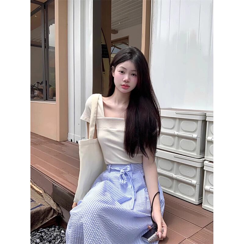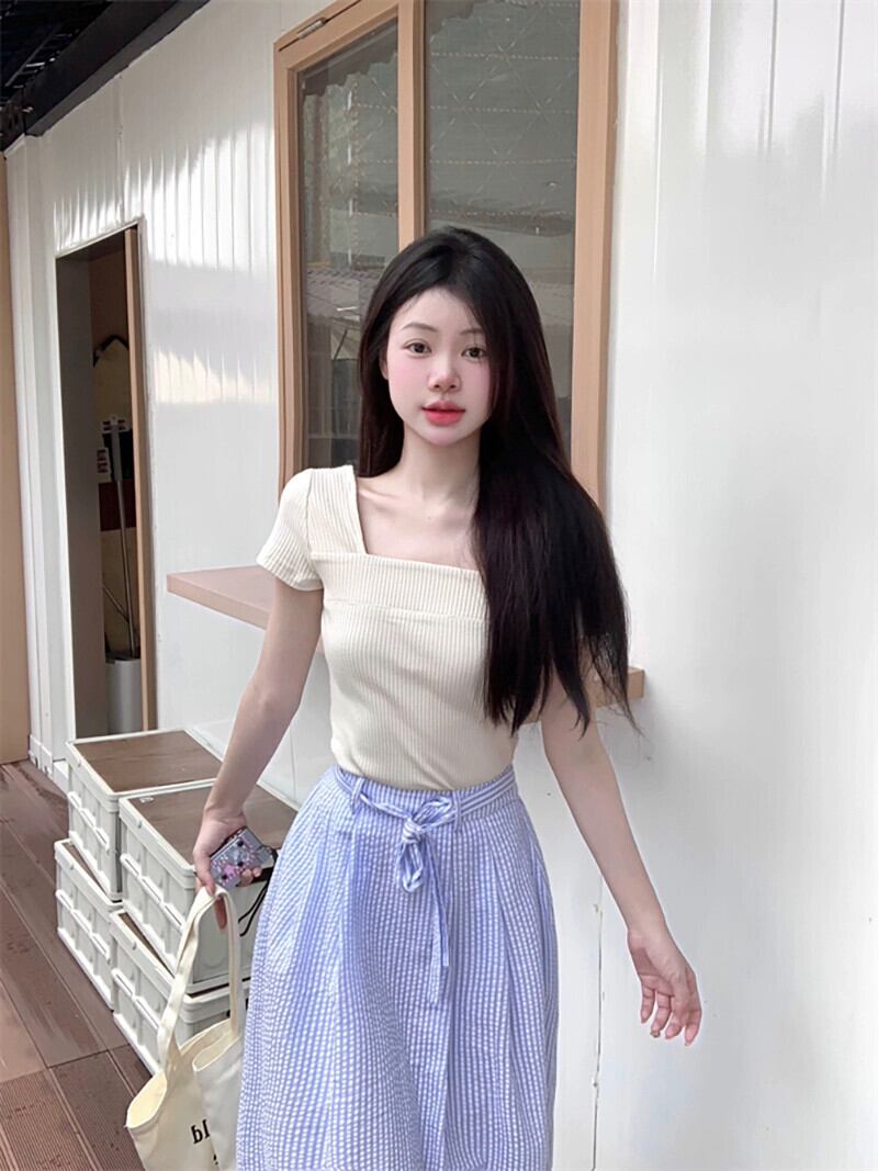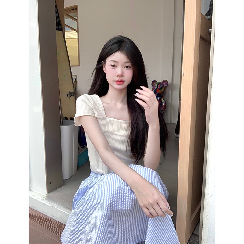 優しい半袖ニットセーターレディース2023年夏新デザインセンススクエアカラーショートセクション多用途気質トップイン サマー 夏物 スクウェア missk43406568180