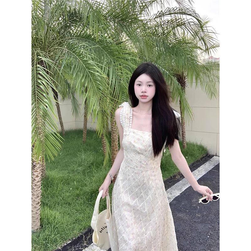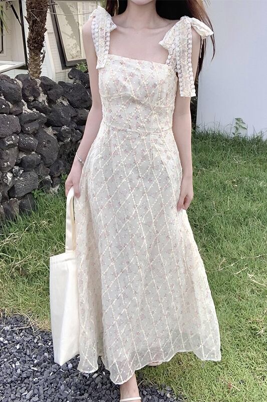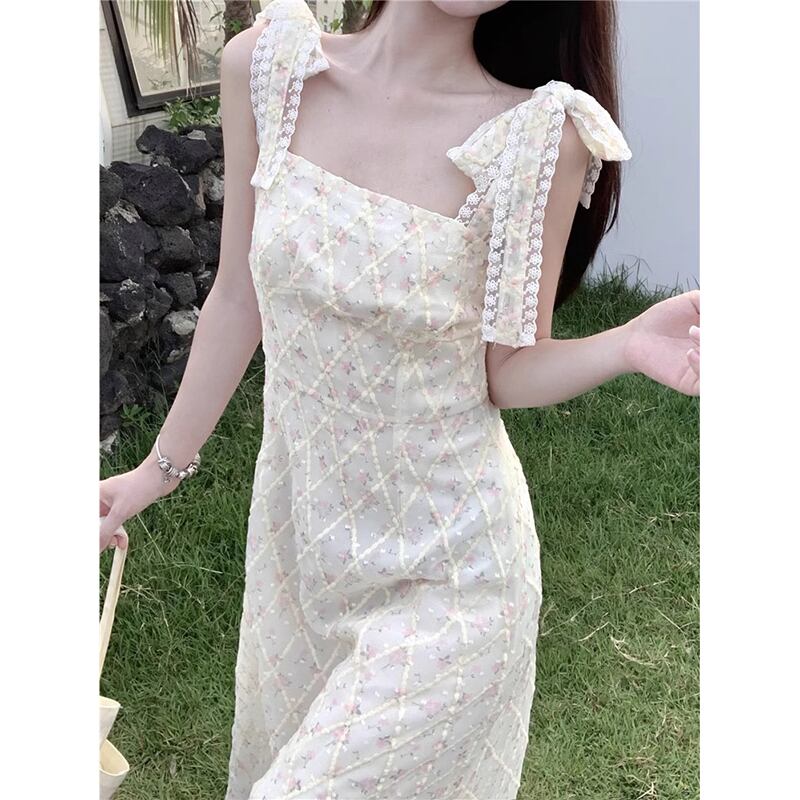 レースステッチ花柄サスペンダードレス レディース 夏感シックウエストスリムロングスカート サマー 夏物 missk50146370251