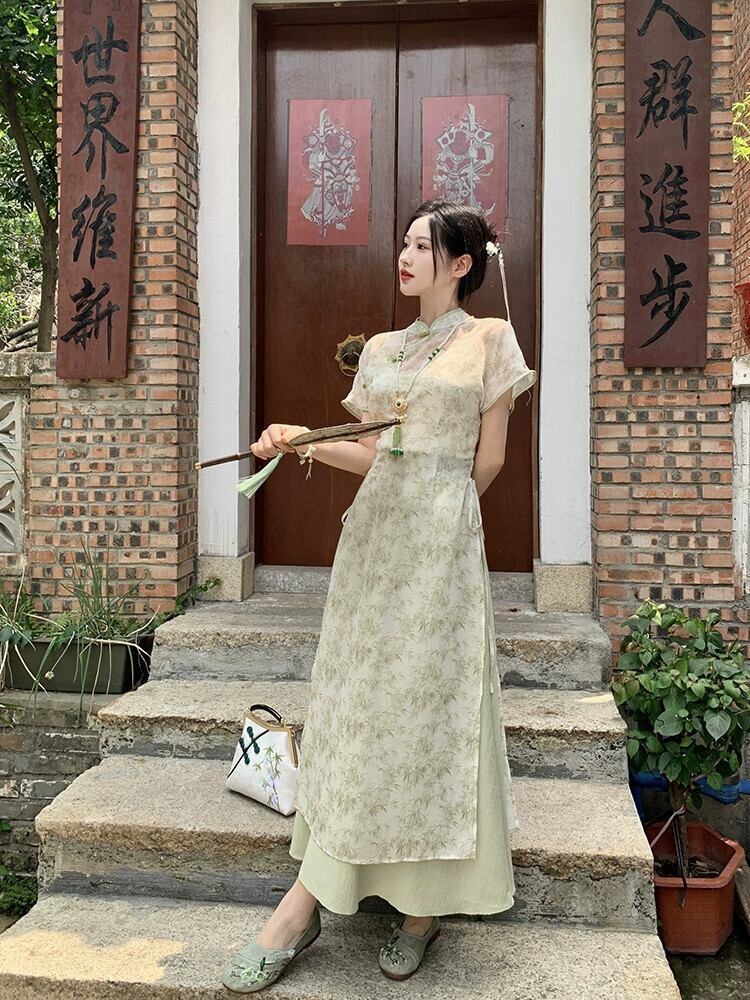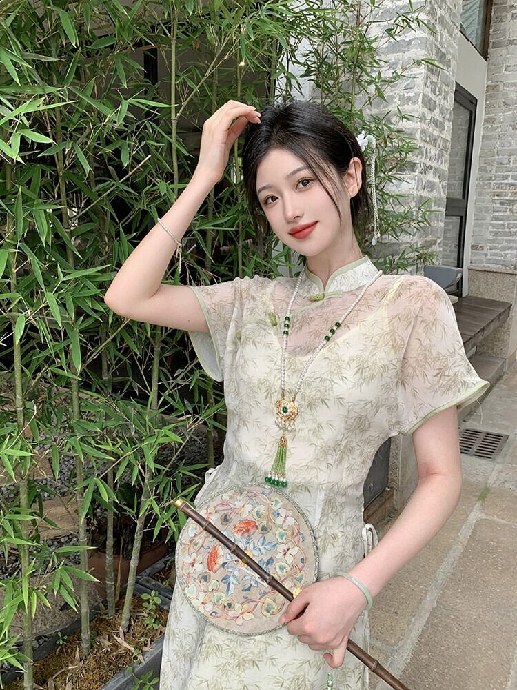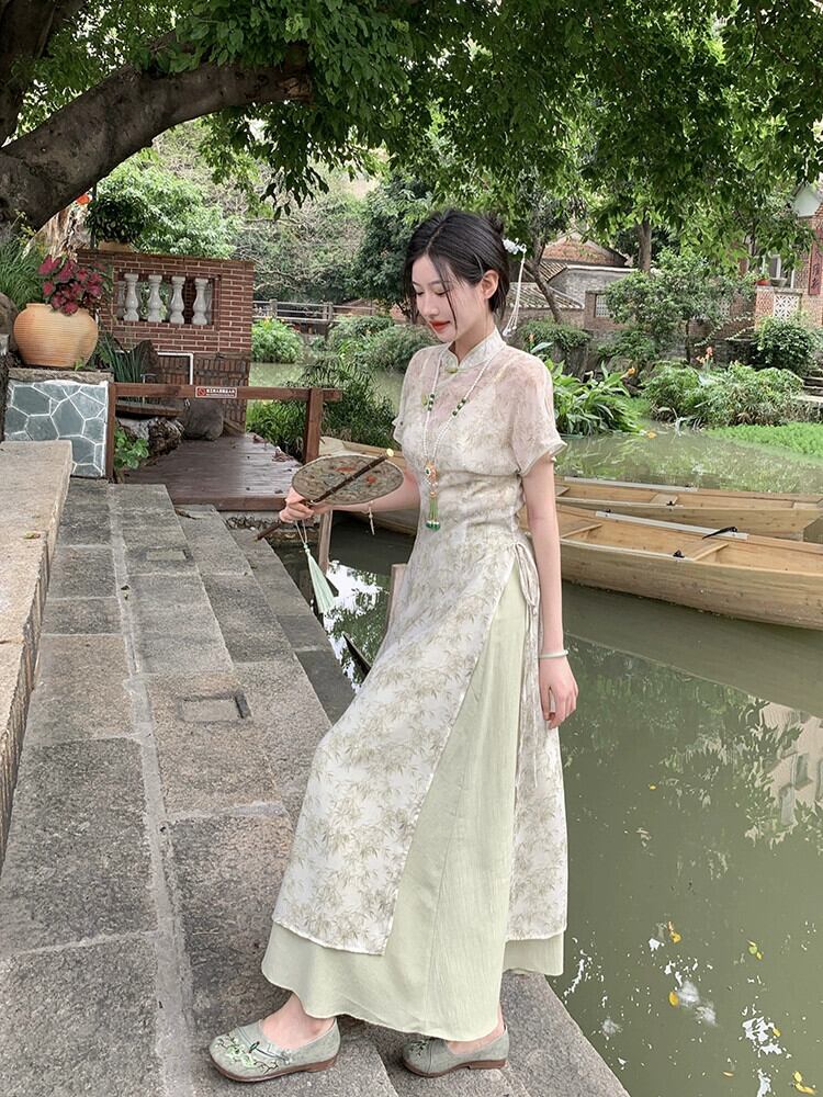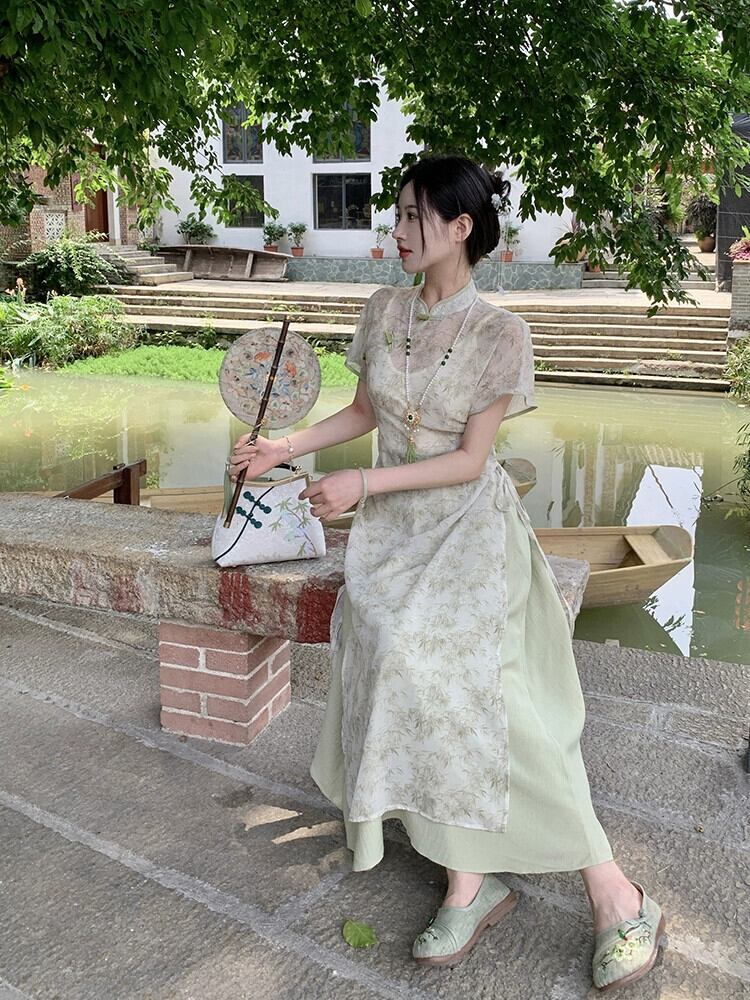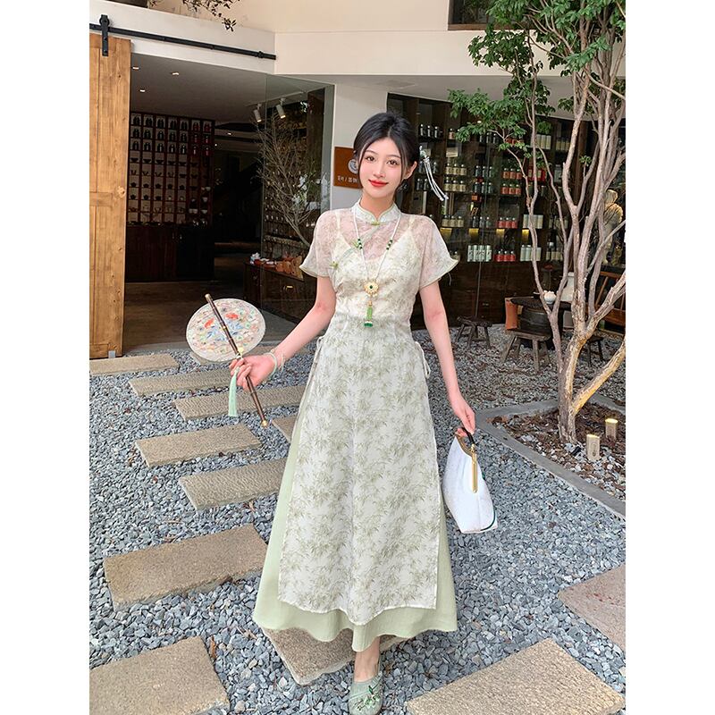 中国風禅花スタンドアップカラー半袖チャイナ + スカートの女性の夏の 2023 新しいファッションスーツ サマー 夏物 花柄 missk3720555953
