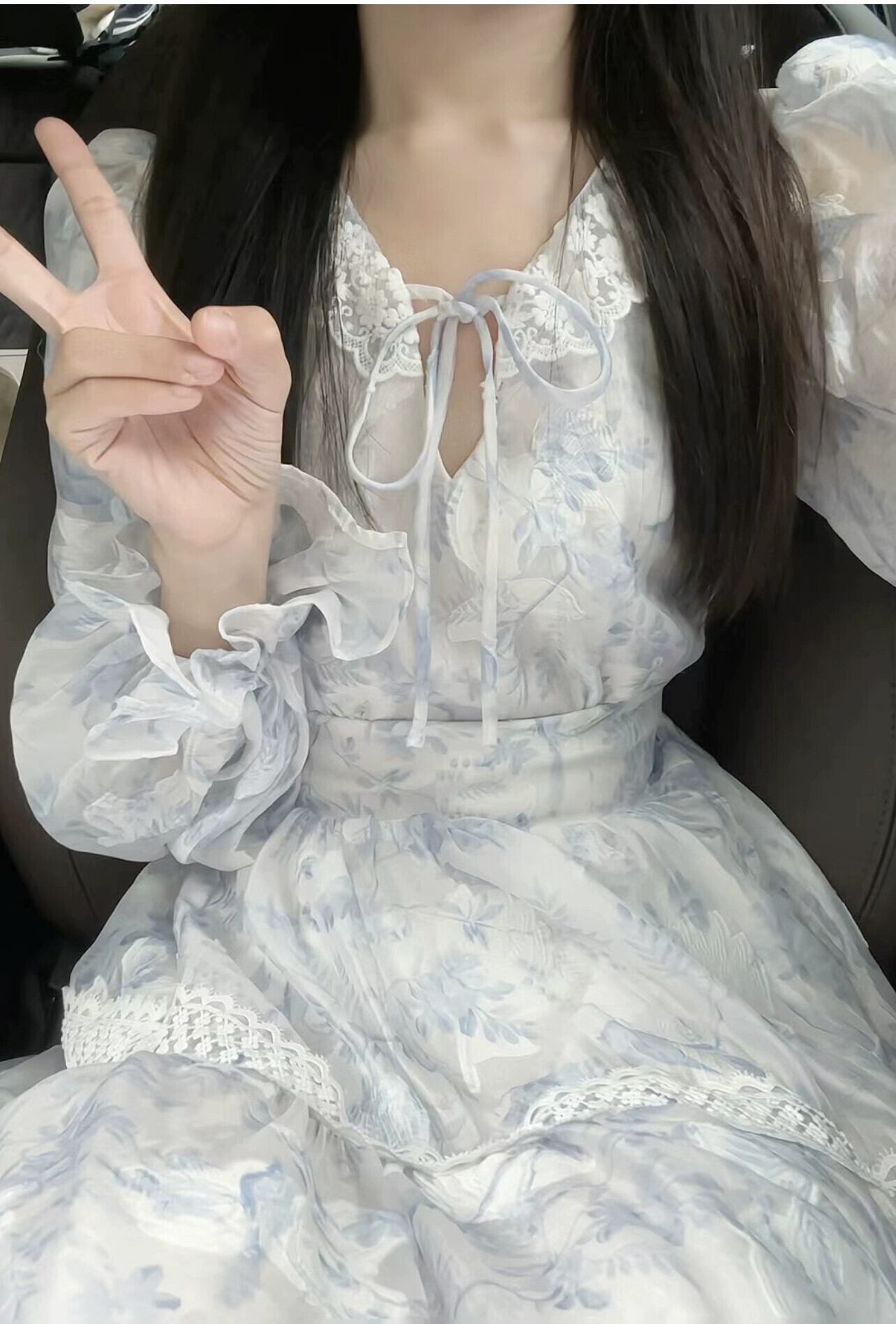 フレンチレトロ花柄長袖ドレスの女性の夏の新しいハイエンドウエストスーパーフェアリーネクタイミッドレングススカート潮 ロング サマー 夏物 missk58024340257