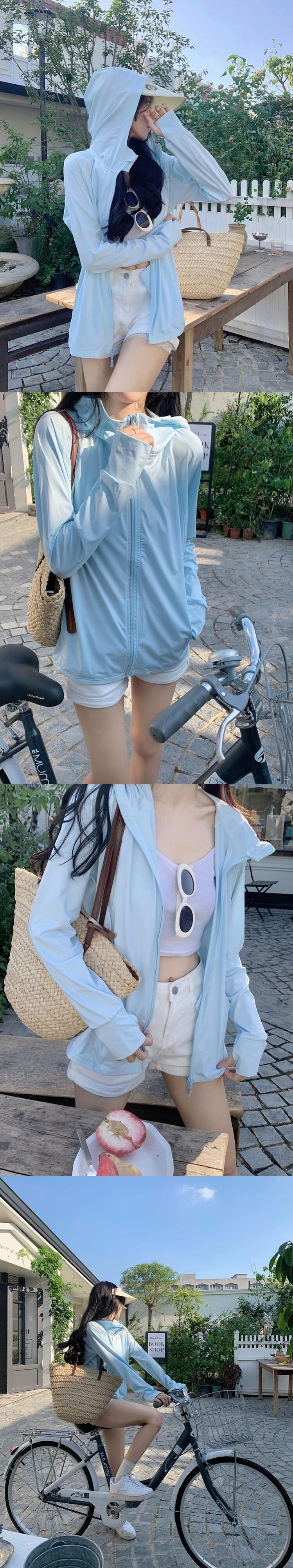 アイスシルク冷感日焼け止めシャツ夏の新バージョンルーズ薄いセクションフード付き上着長袖カーディガンジャケットジャケット女性 ロング サマー 夏物 missk77059526298