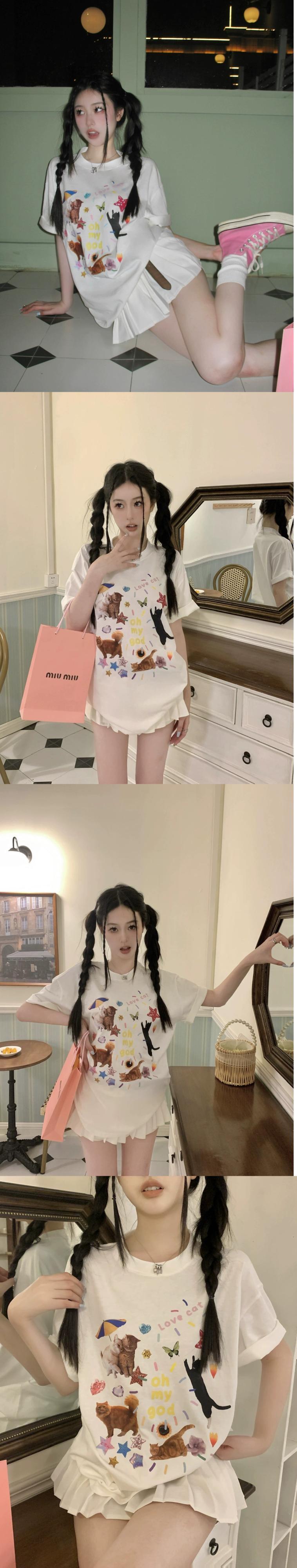 かわいいアニマルプリント半袖 Tシャツレディース 2023 夏の新しいファッションラウンドネックオールマッチシックなトップイン 大人ガーリー スウィート キュート カジュアル サマー 夏物 Oネック missk88825947634