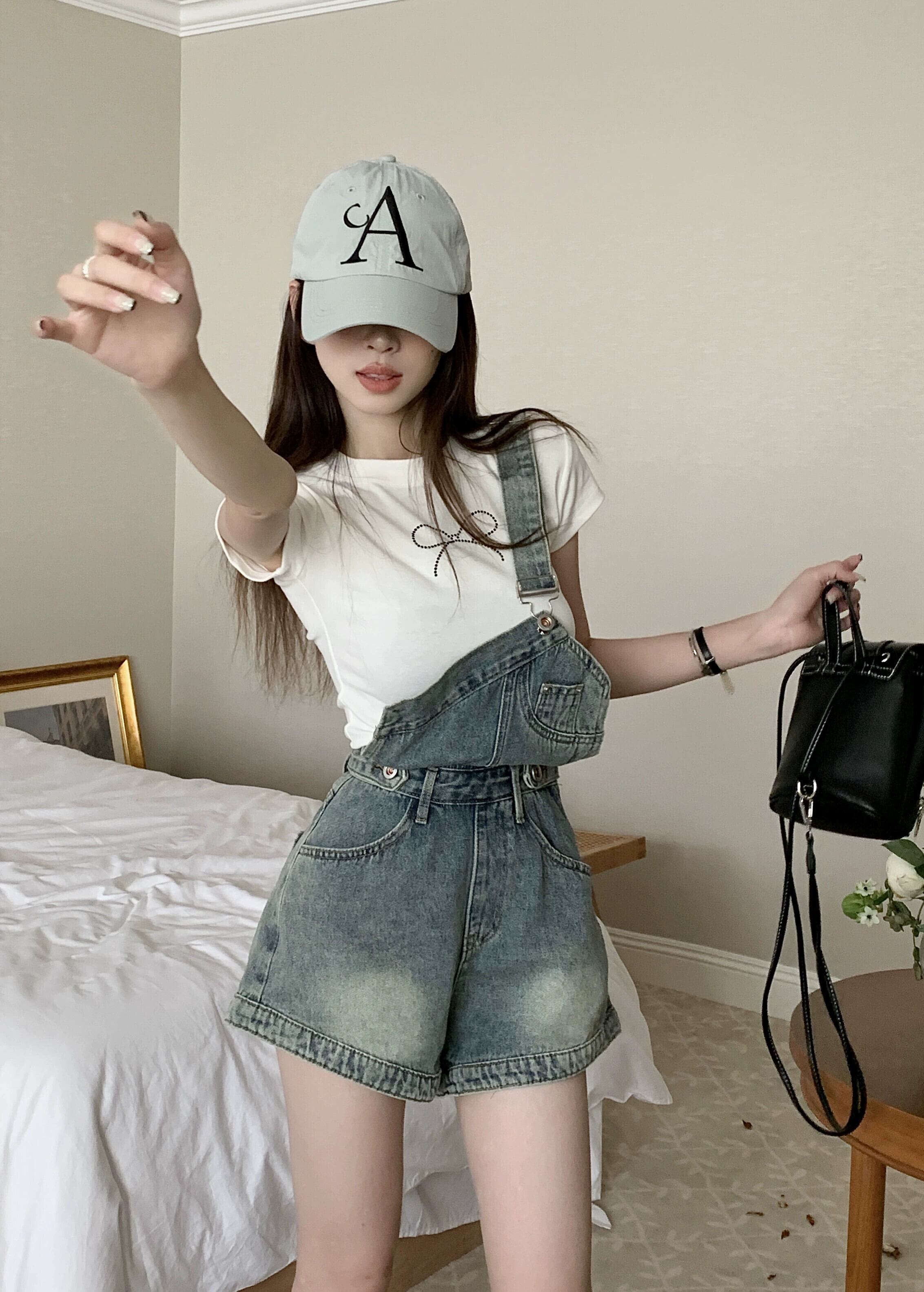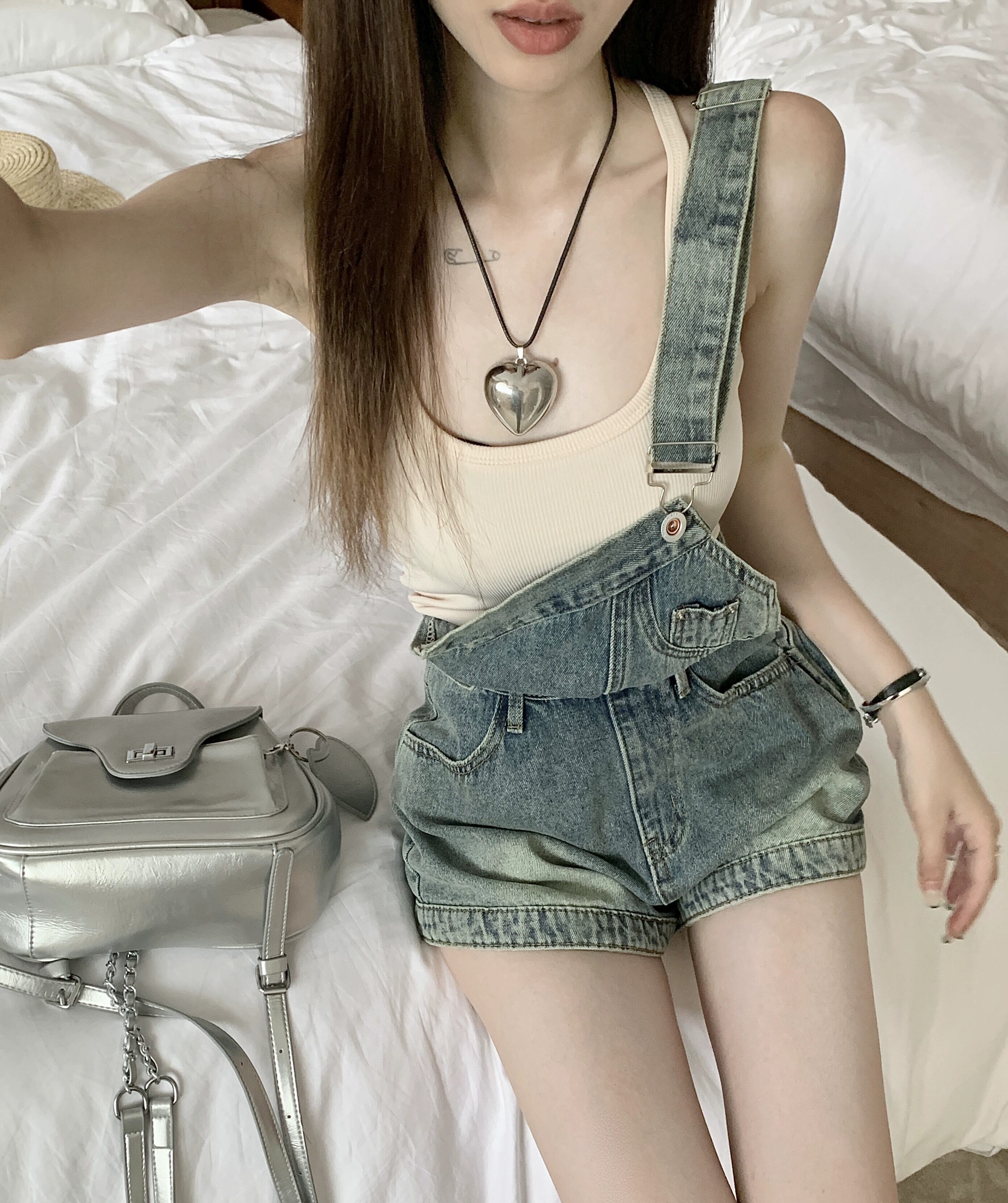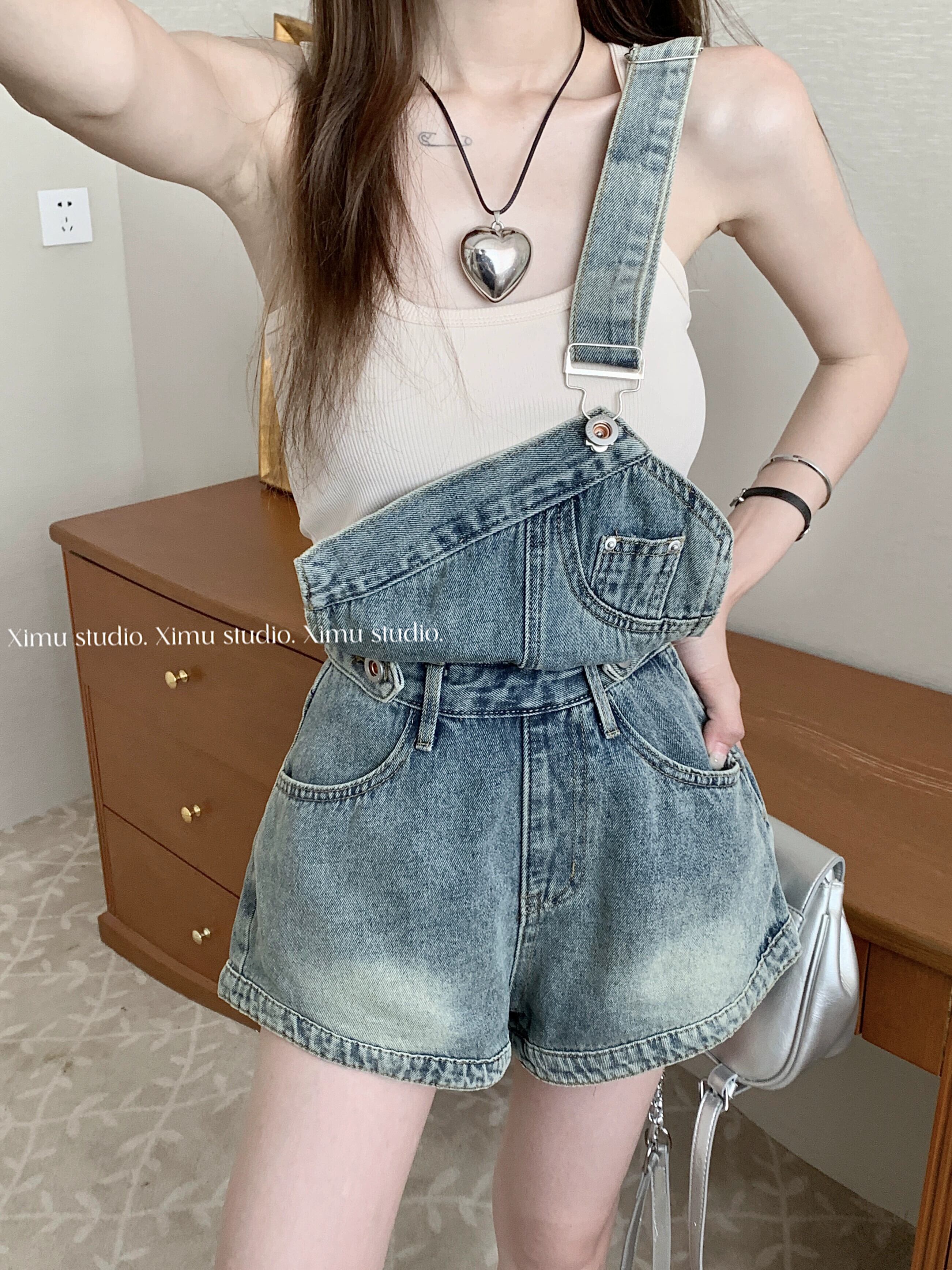 レトロウォッシュサスペンダージーンズレディース夏の新しいスタイル古いハイウエストオールマッチファッション不規則なワイドレッグショートパンツ ハイウェスト サマー 夏物 missk39273535212