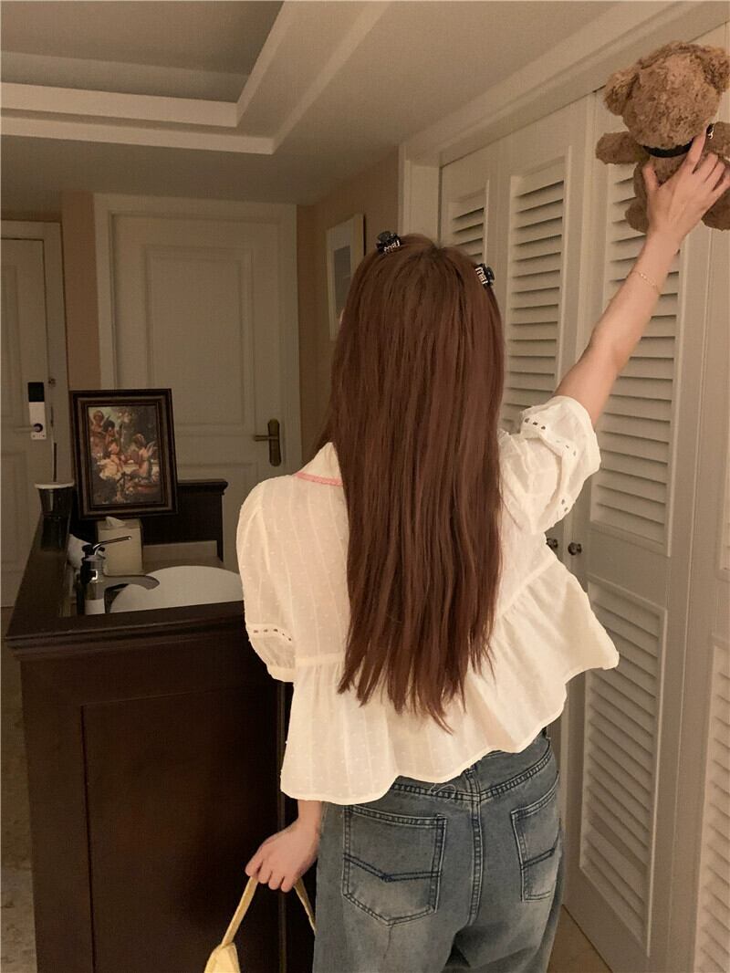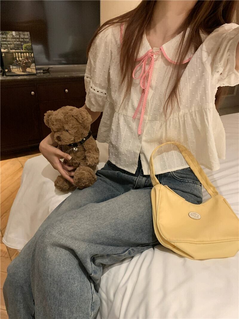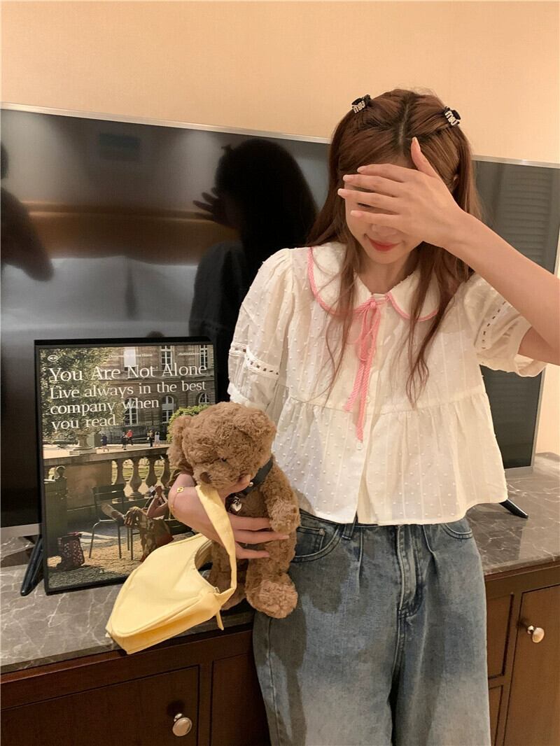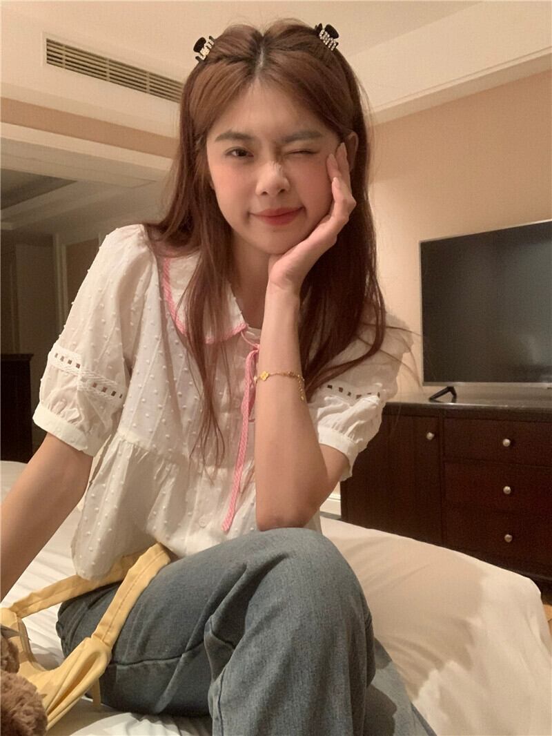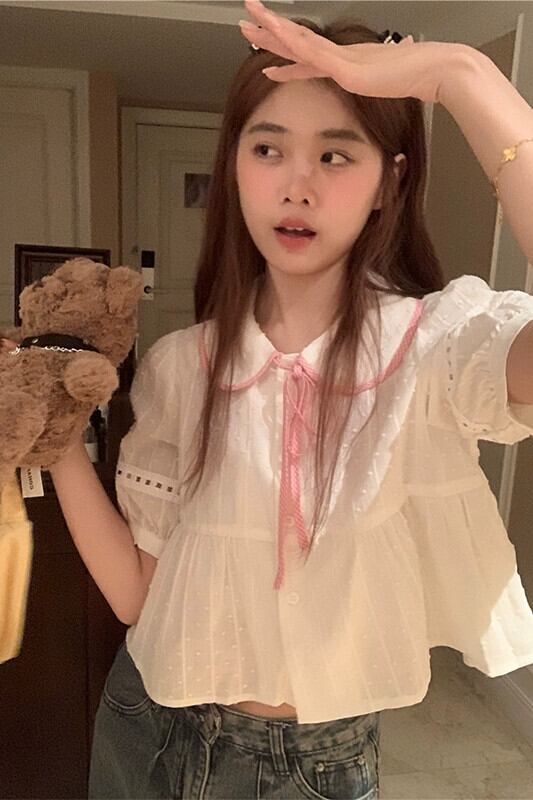 ファッション半袖シャツ女性の夏の 2023 新しいピンクグリッドネクタイデザインセンスかわいい人形シャツトップ潮 大人ガーリー スウィート キュート カジュアル サマー 夏物 missk74465773985