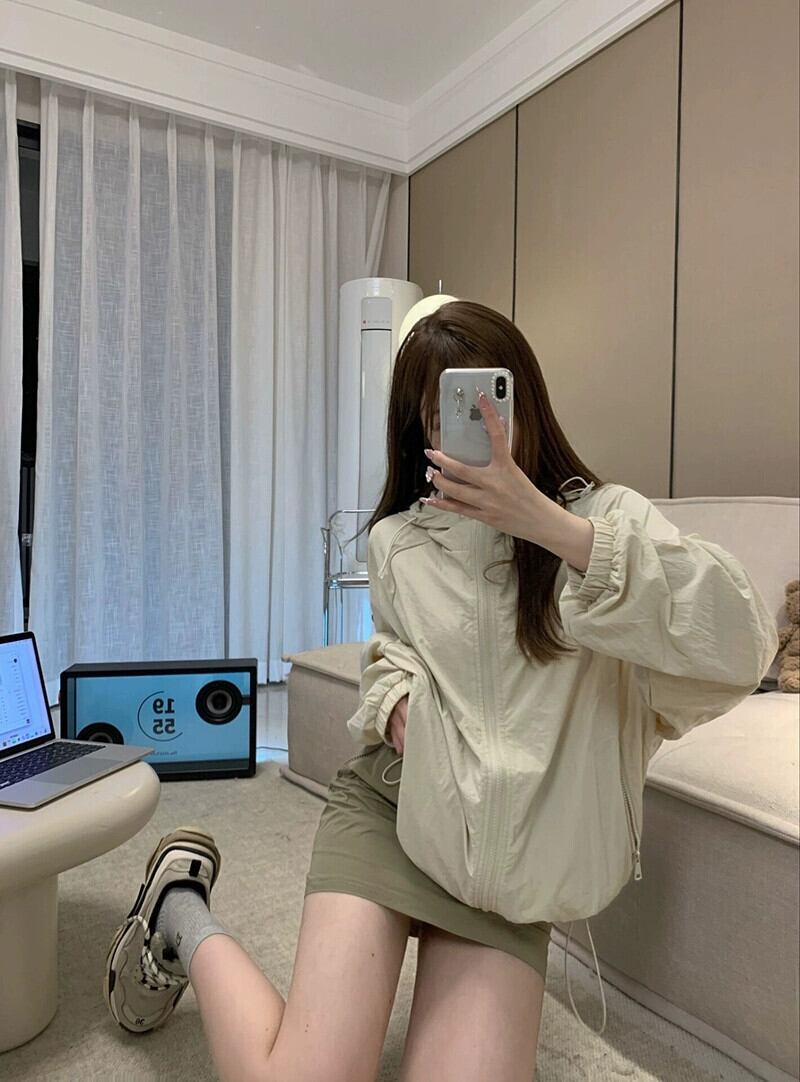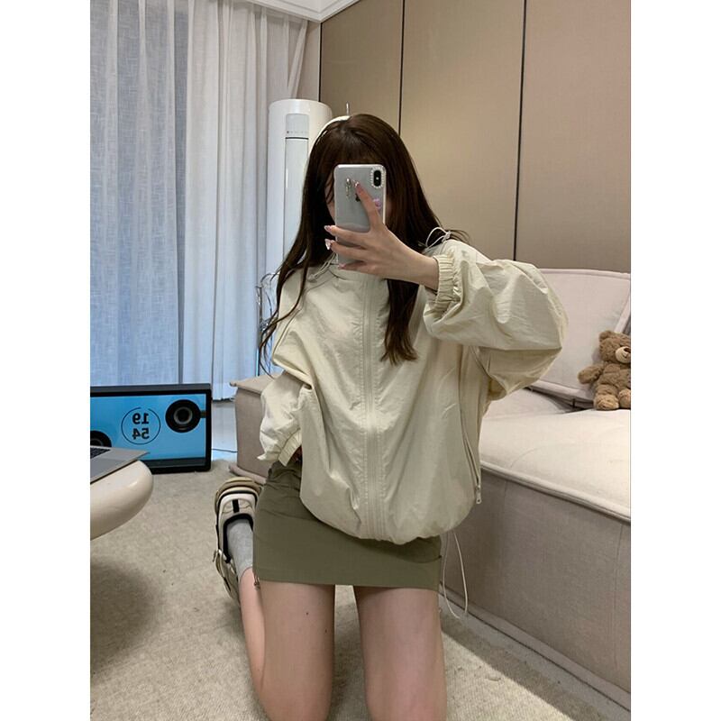 塩着用長袖日焼け止めジャケット夏の新しいスタイルのルーズファッションジッパー巾着カーディガンブルートップ ロング サマー 夏物 missk76984840995