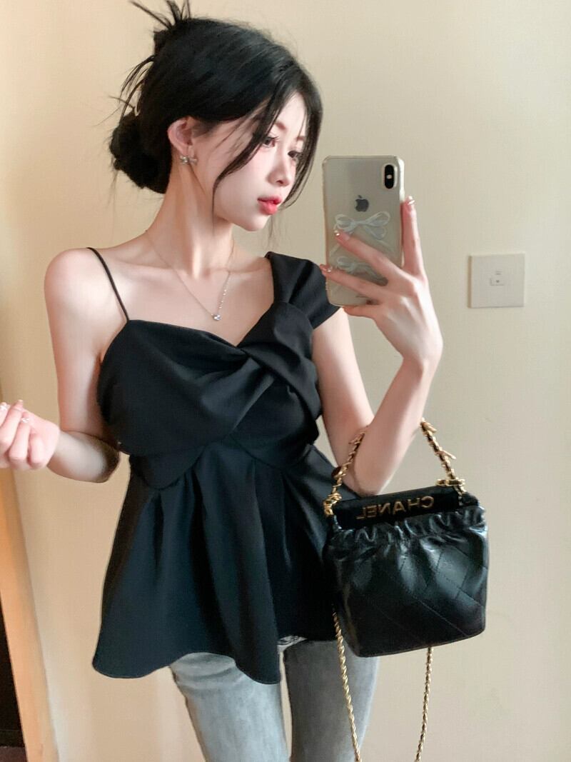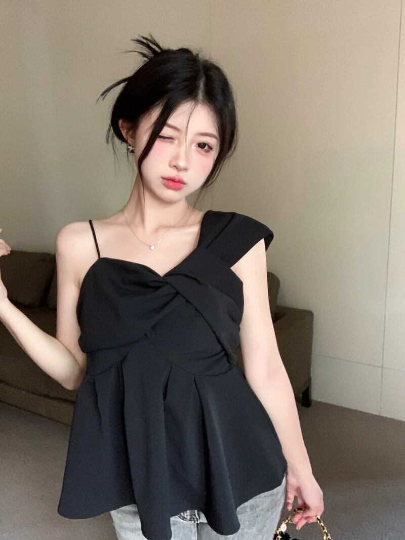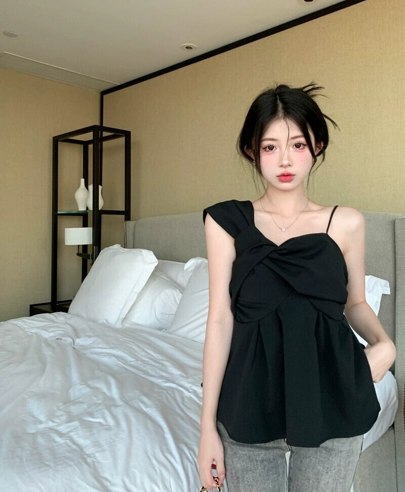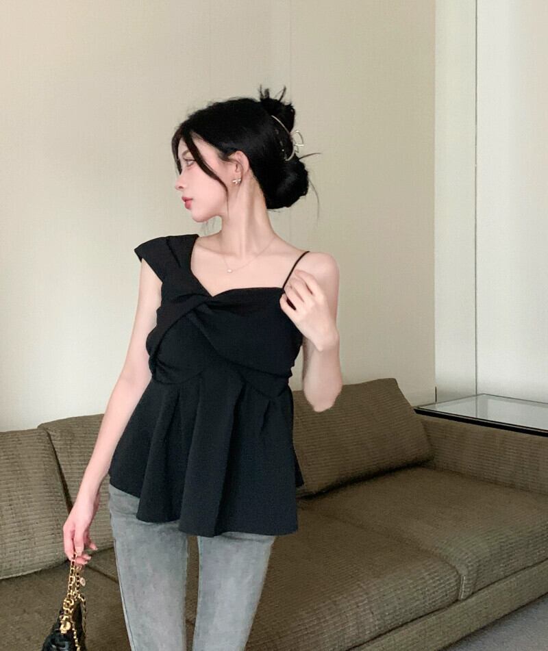 スパイス スタイル オフショルダー ノースリーブ シャツ レディース 夏の新しいスリム ファッション デザイン センス スキーム不規則なショート ベスト サマー 夏物 missk22372052172