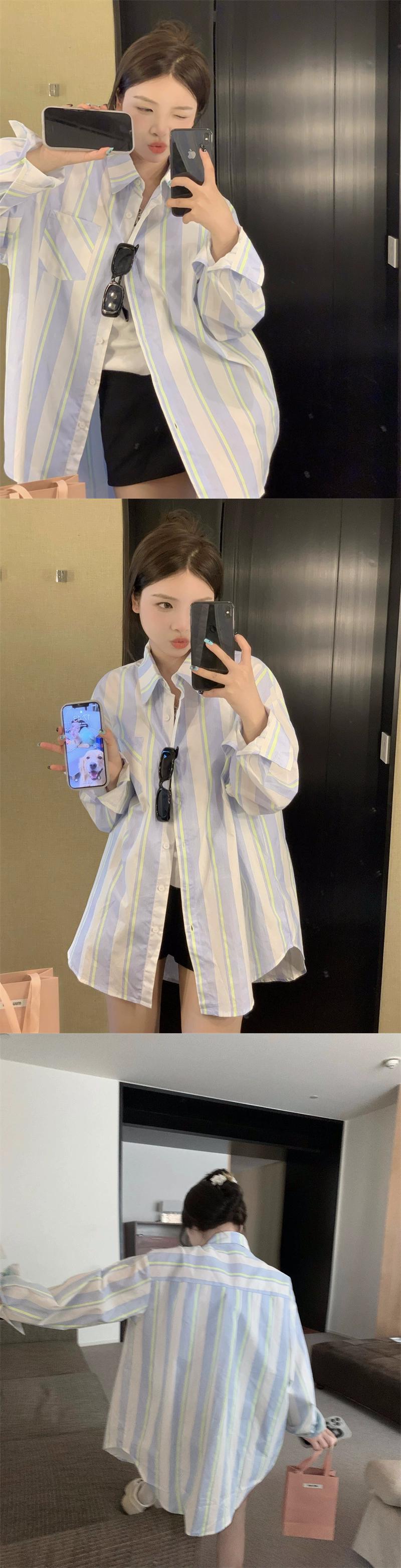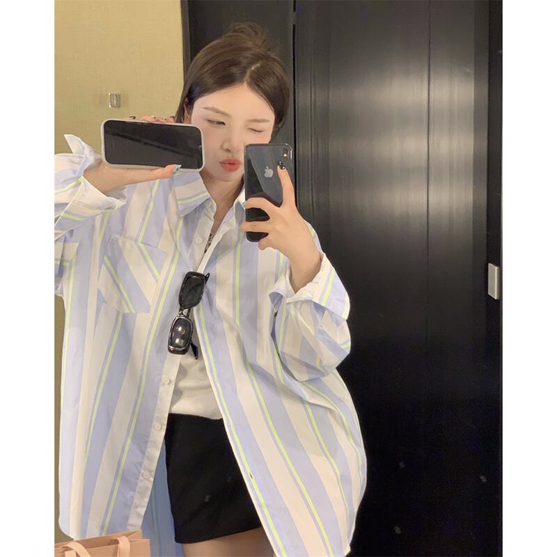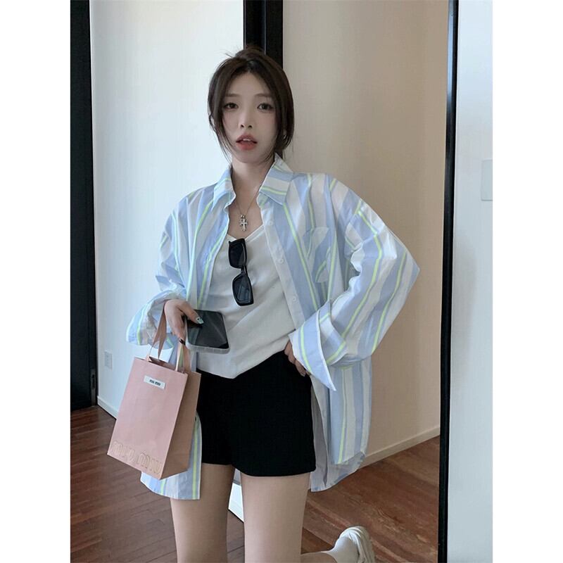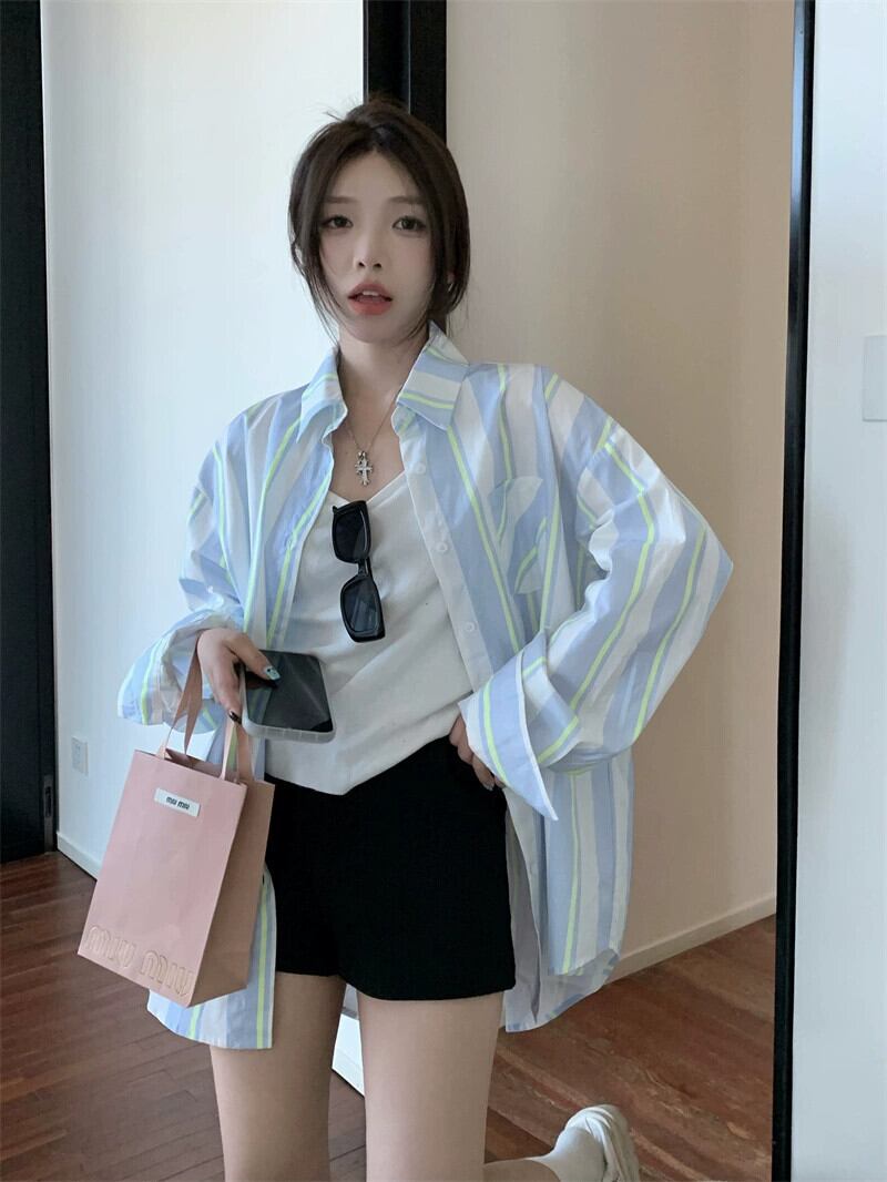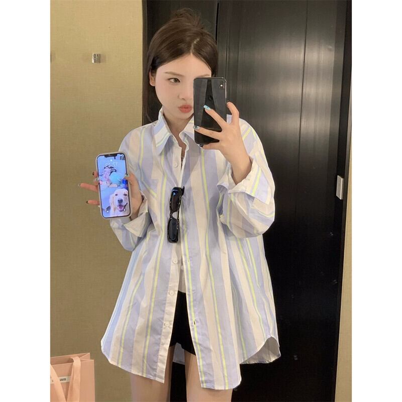 カラーマッチングストライプシャツ女性の 2023 夏の新しいハイエンドルーズミッドレングスレイヤード長袖日焼け止めカーディガン ロング レッド サマー 夏物 missk55540272799