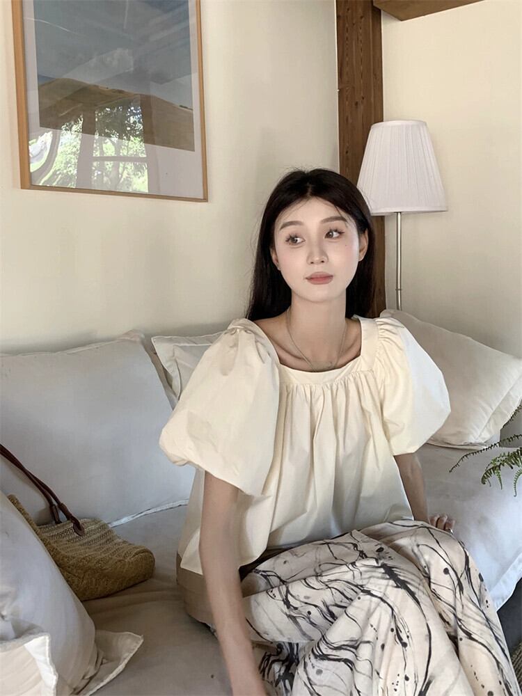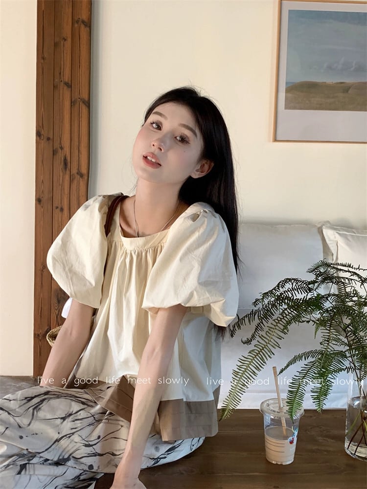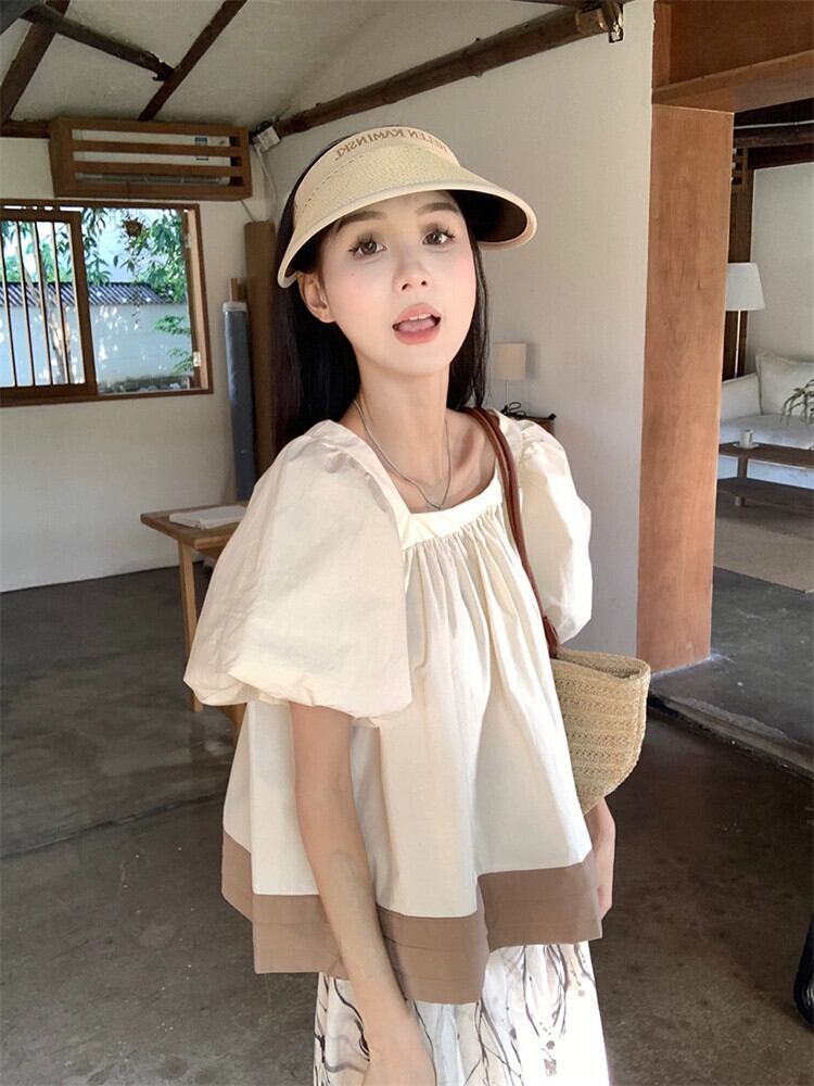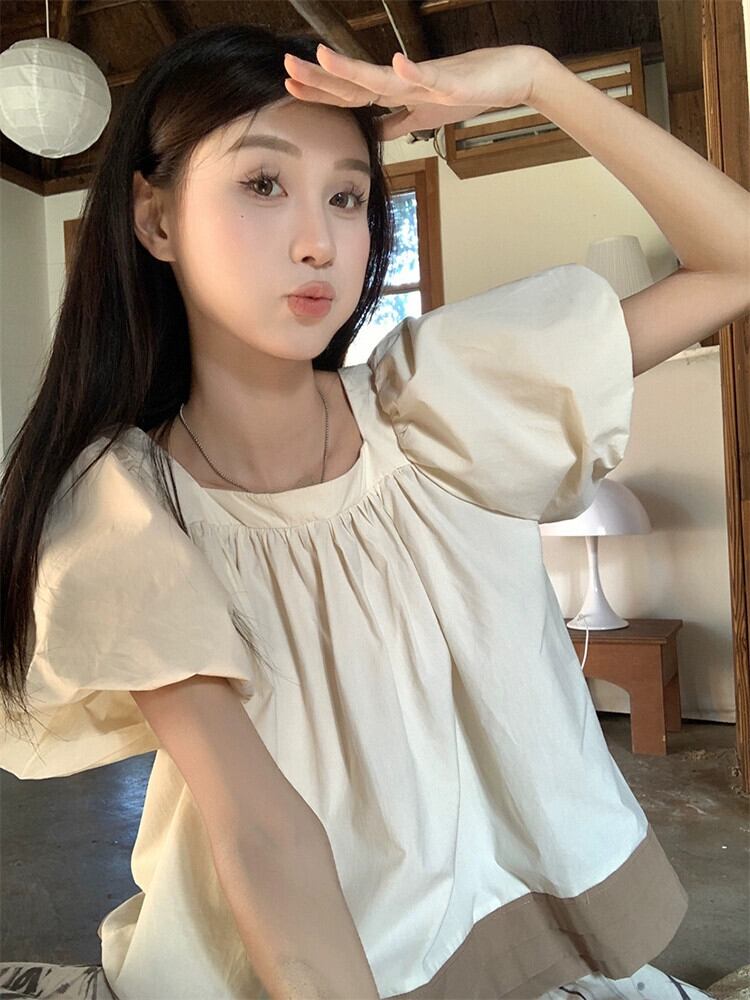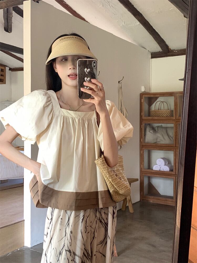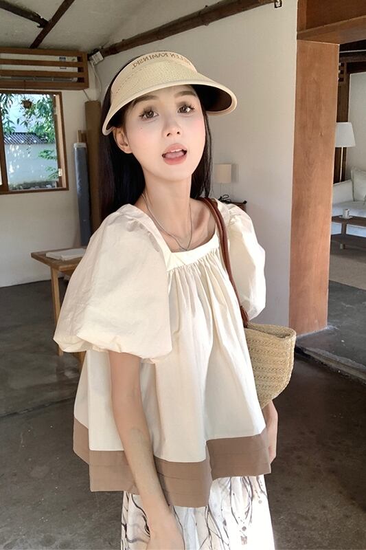 スクエアカラーコントラストカラーバブル半袖シャツ夏の新しいフレンチスタイルのルーズなデザインセンスニッチファッションシックトップトレンド サマー 夏物 スクウェア missk12906867532