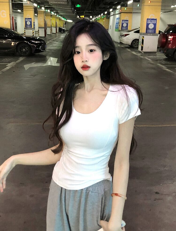 純粋な欲望スタイルショート Tシャツ 2023 春夏の新しい自己修養とスリムショルダー半袖白ボトムトップ女性 ホワイト スプリング 春物 サマー 夏物 missk59524314279