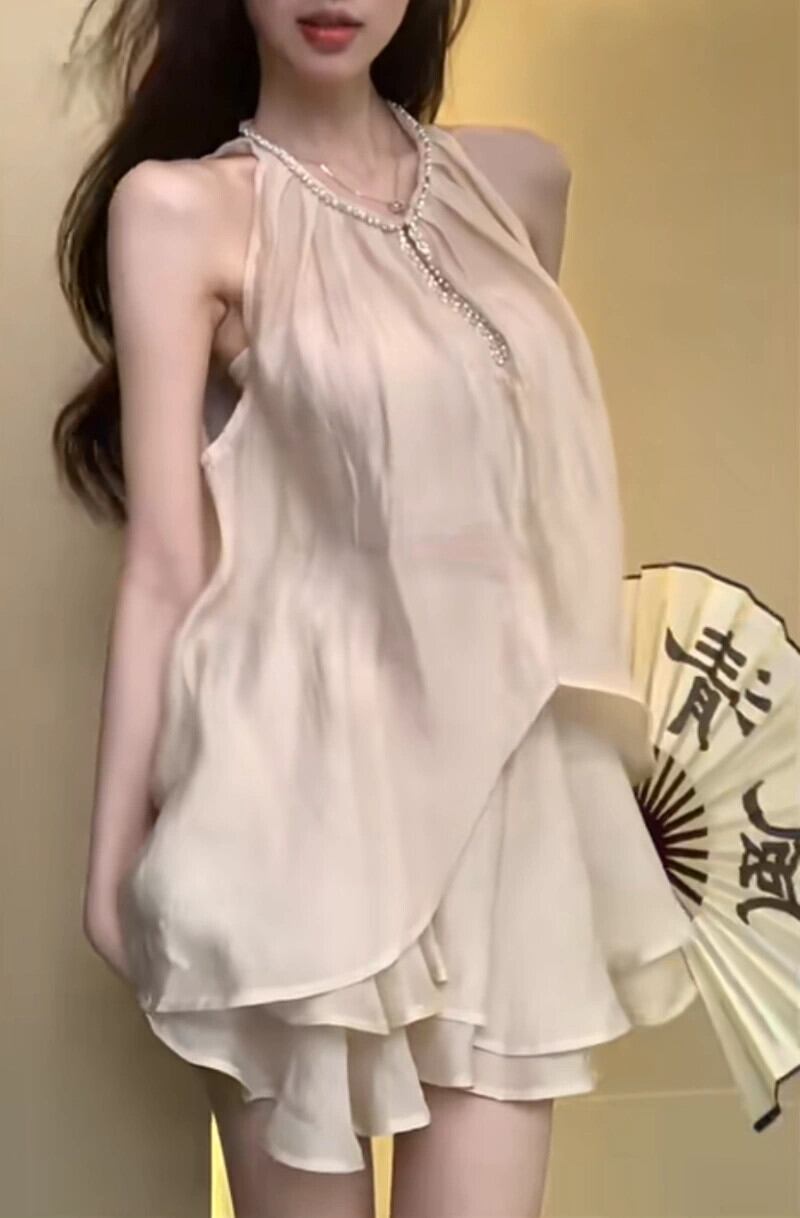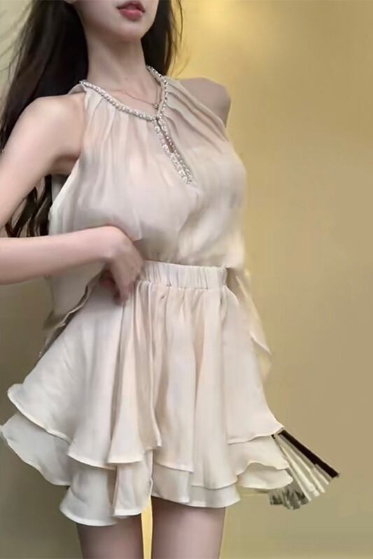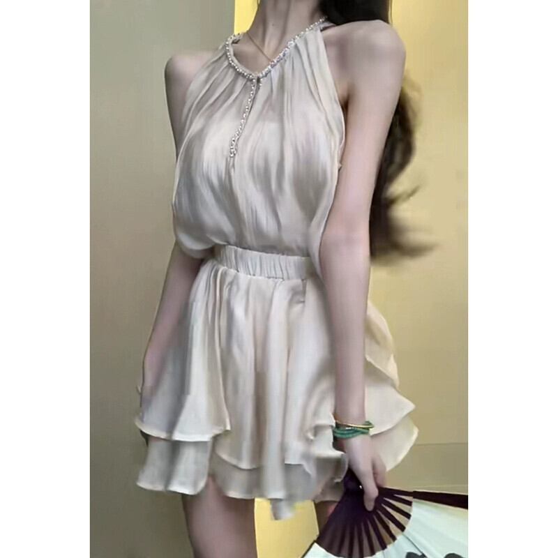 -高品質の重工業ビーズ吊りネック薄型トップハイウエストケーキスカートスカート女性の夏の新しいファッションスーツ ハイウェスト サマー 夏物 missk35723263299