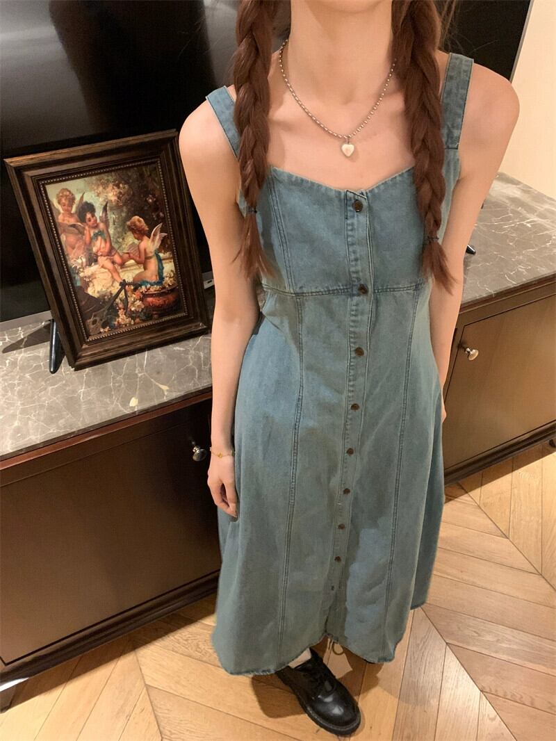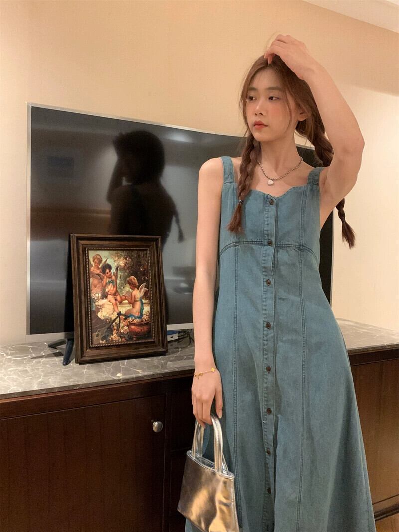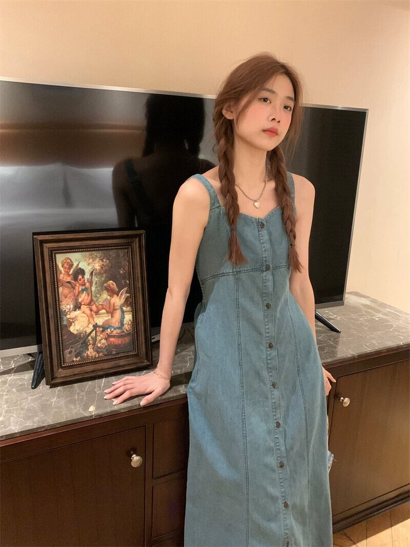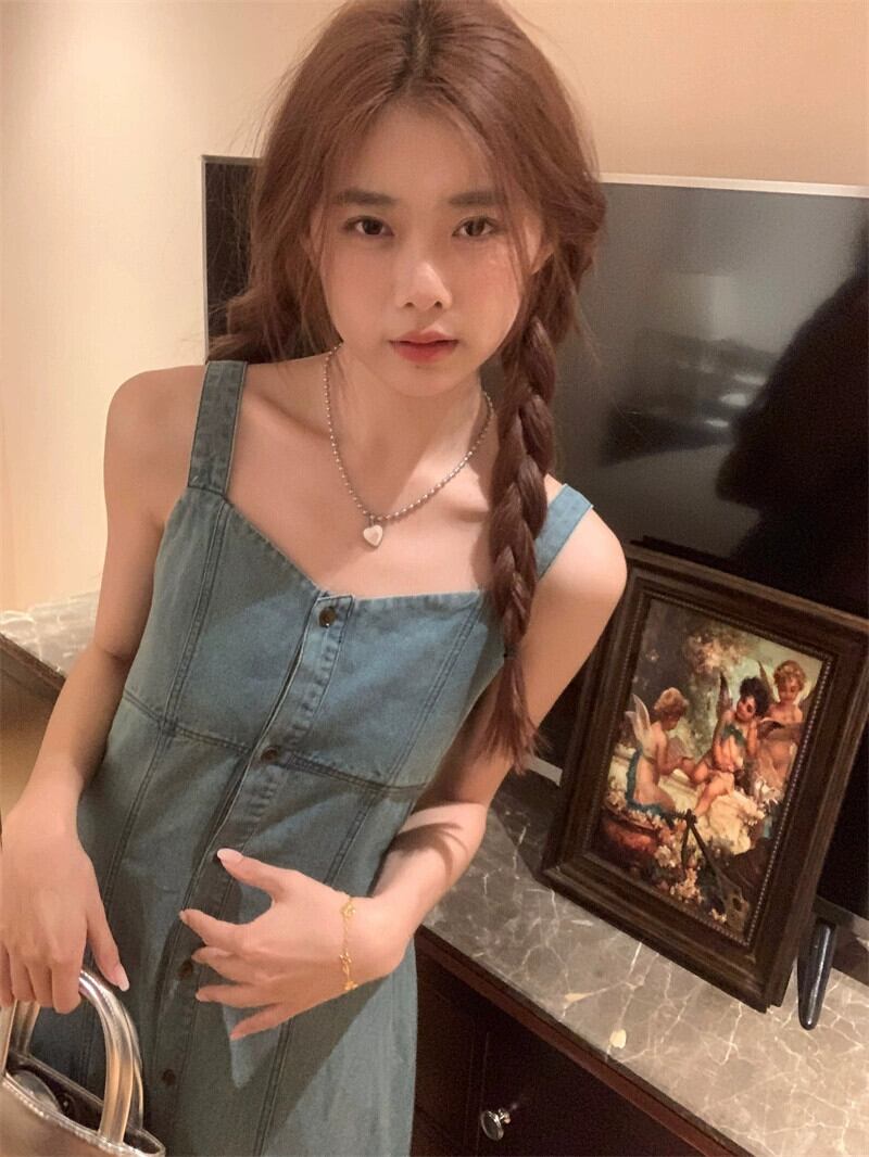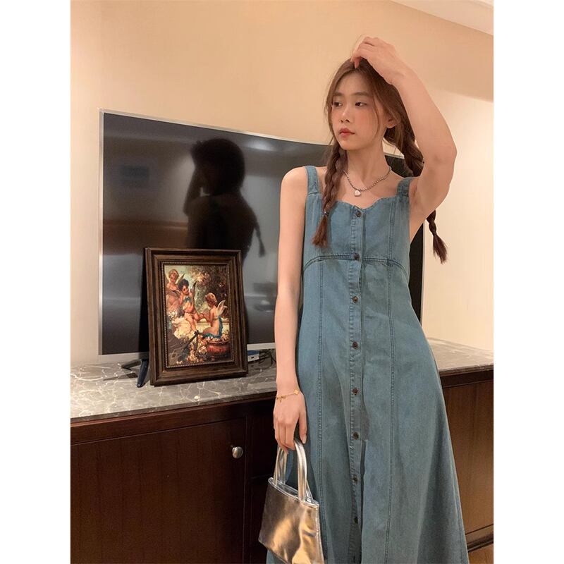 レトロデニムサスペンダードレスの女性の夏の2023新しいデザインセンスユニークなニッチスリム気質ロングスカート潮 サマー 夏物 missk26059009268