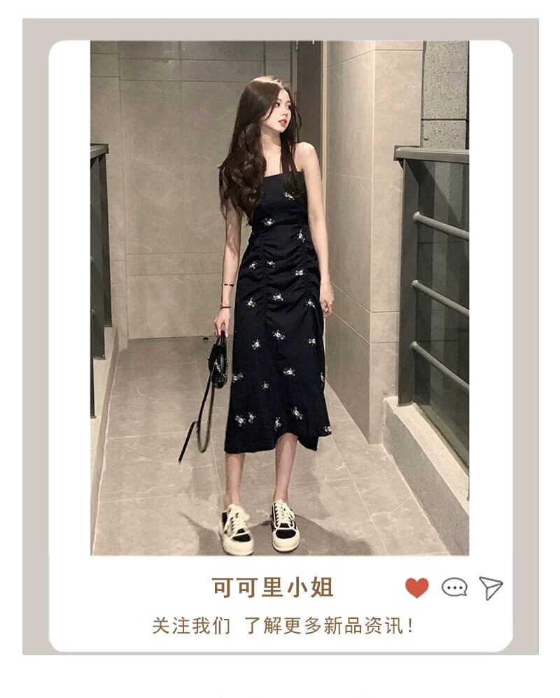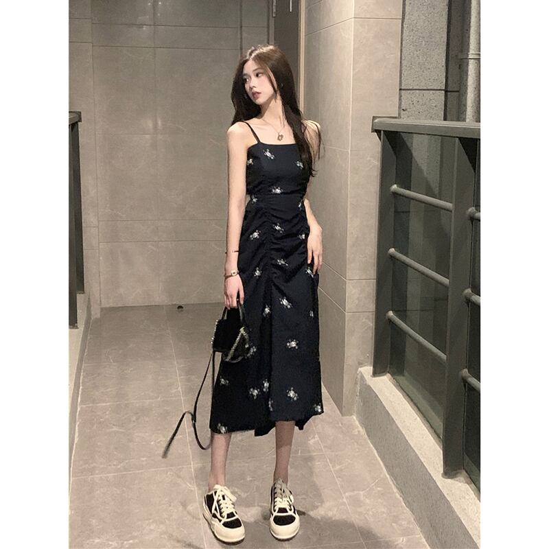 -エンドフローラルサスペンダードレスレディース2023年夏新しいフレンチスタイルのスリムで薄いミドル丈の気質スカート サマー 夏物 花柄 missk23312319481