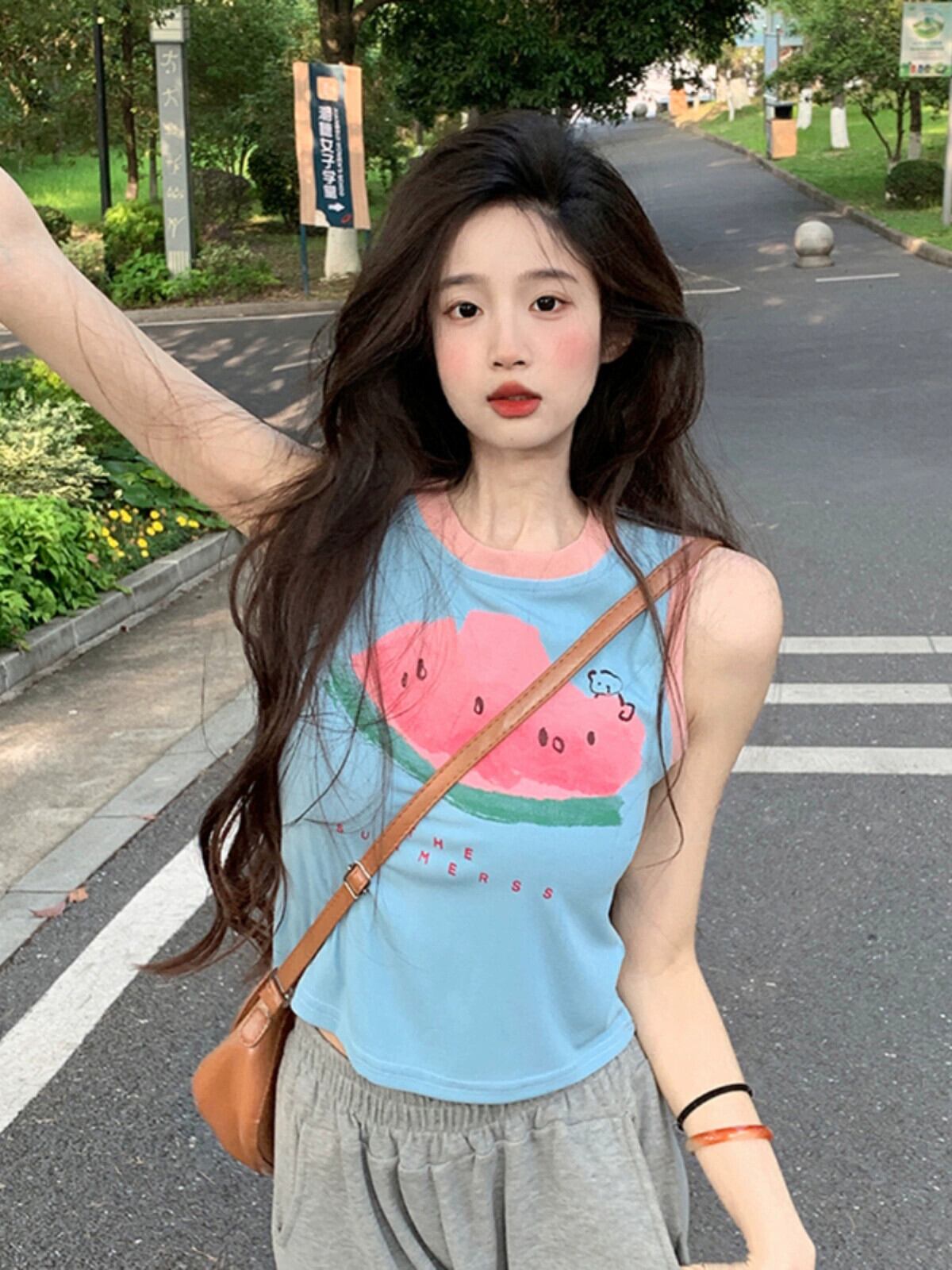 ドーパミン着用ベストトップス夏新甘いコントラストカラーショートセクションスリムフィット年齢軽減アウターウェア小さなサスペンダー 大人ガーリー スウィート キュート カジュアル サマー 夏物 missk43787358558