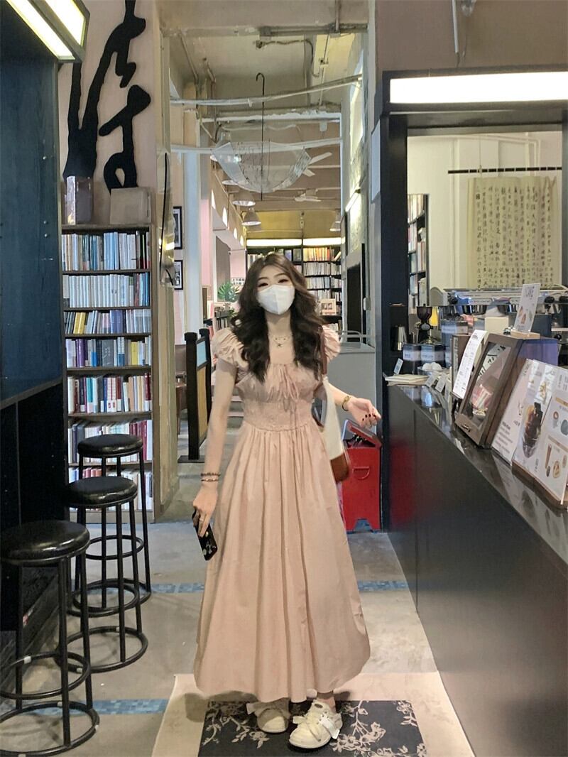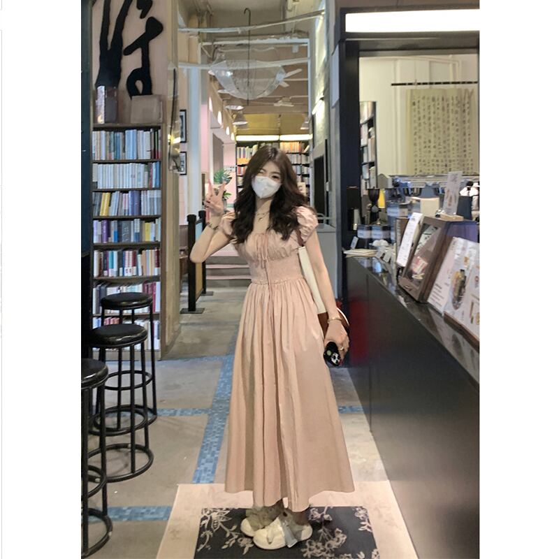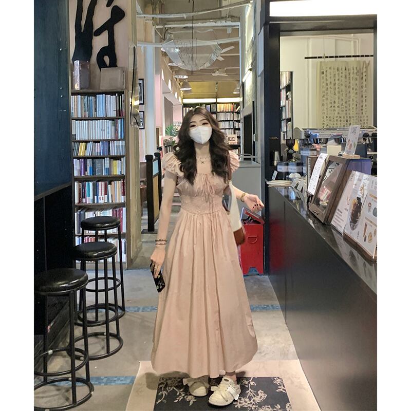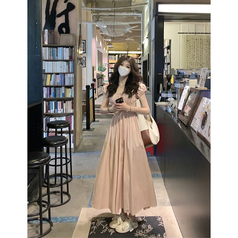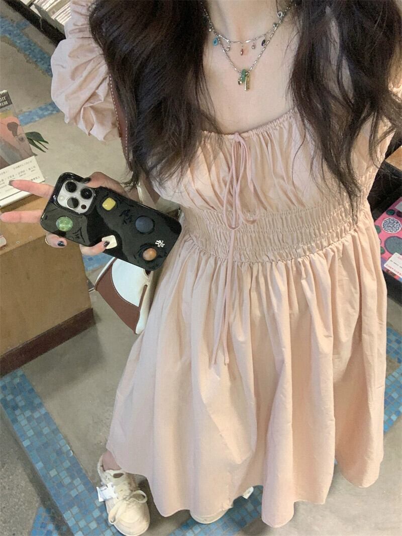 ピンクのパフスリーブドレス女性の夏の新しいウエスト痩身甘い気質ファッションドレスシック 大人ガーリー スウィート キュート カジュアル サマー 夏物 missk52982992957