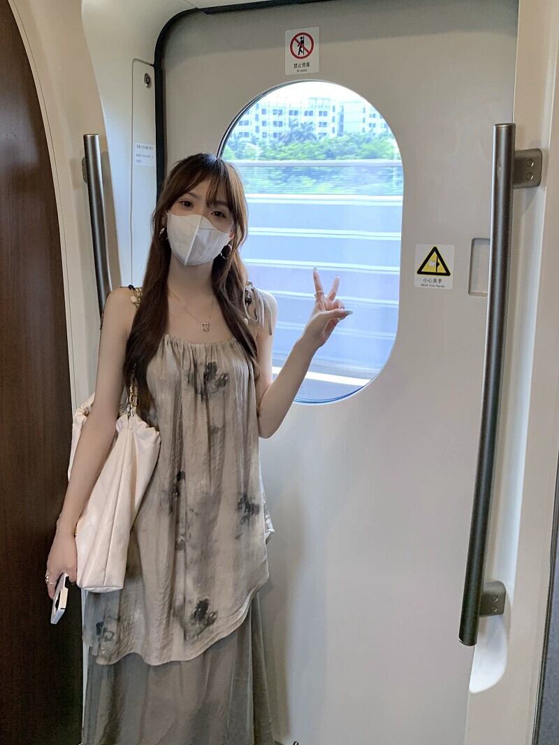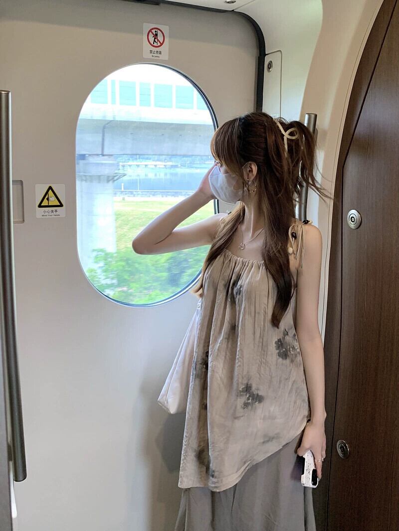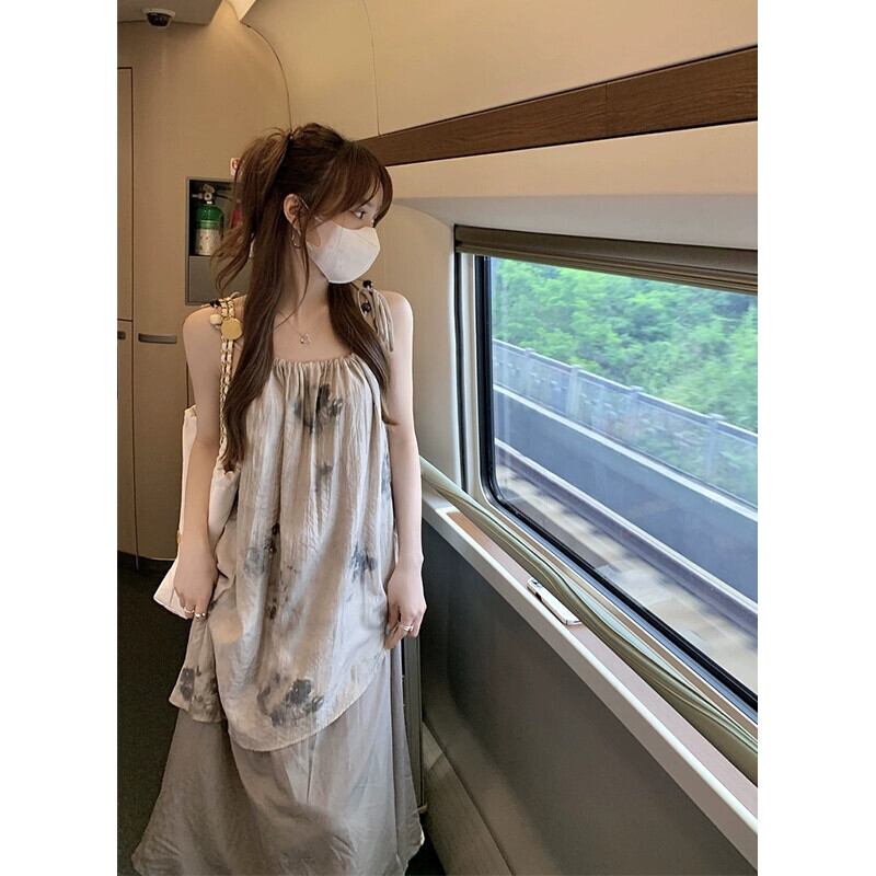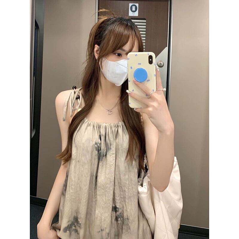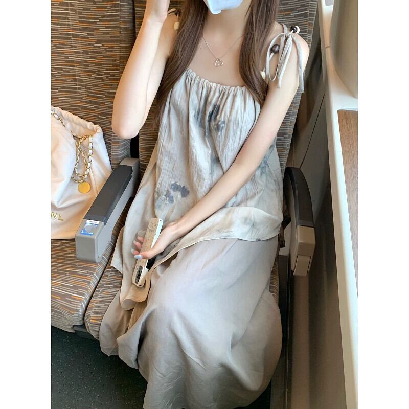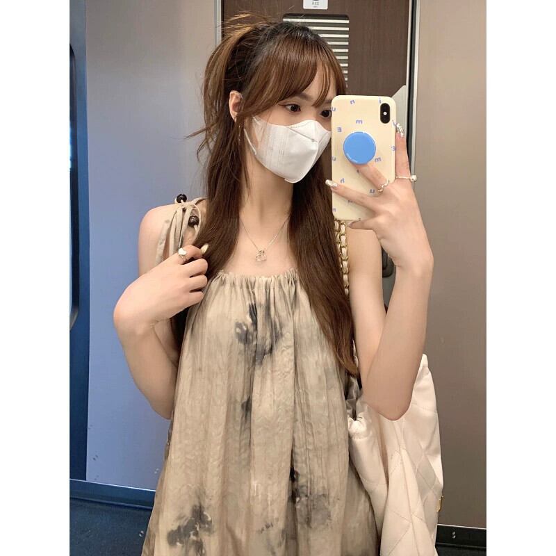 茶系絞り染めサスペンダードレス婦人服2023年夏新作フレンチデザインセンスストラップスリム気質スカート サマー 夏物 missk73982506354