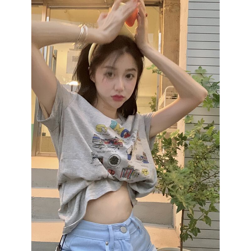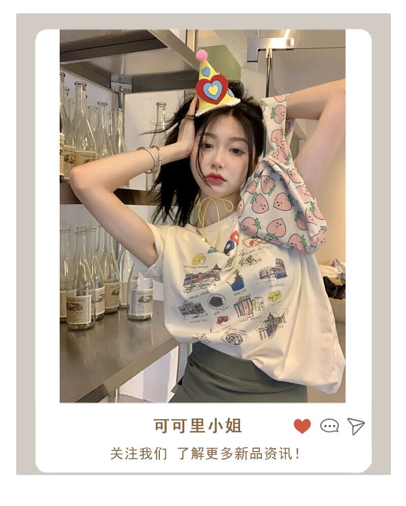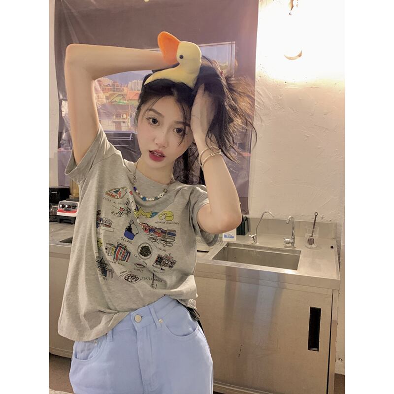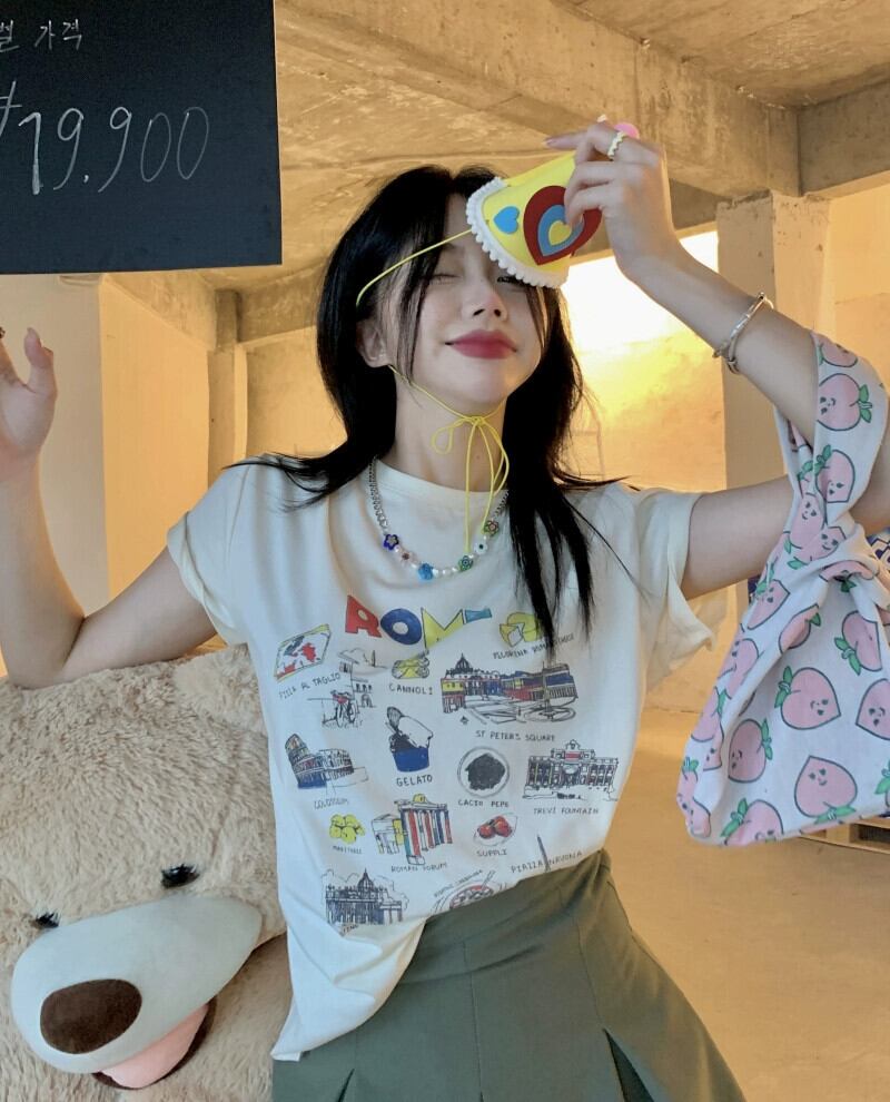 プリント半袖Tシャツレディース2023年夏新デザインセンスレトロアメリカンオールマッチラウンドネックルーズトップタイドイン サマー 夏物 Oネック missk53243100719