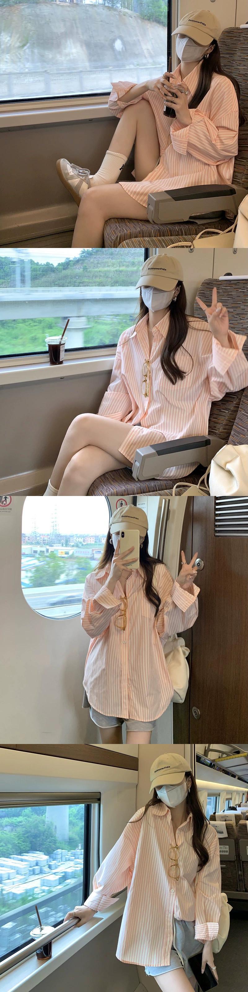 縦ストライプ日焼け止めシャツ女性の 2023 夏の新バージョンの高品質の薄いセクションルーズミッドレングス長袖カーディガン ロング サマー 夏物 missk51813016292