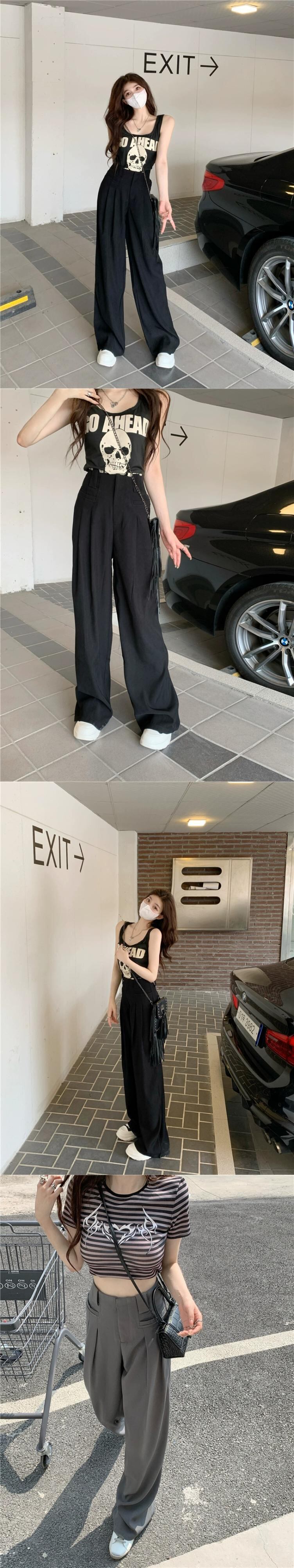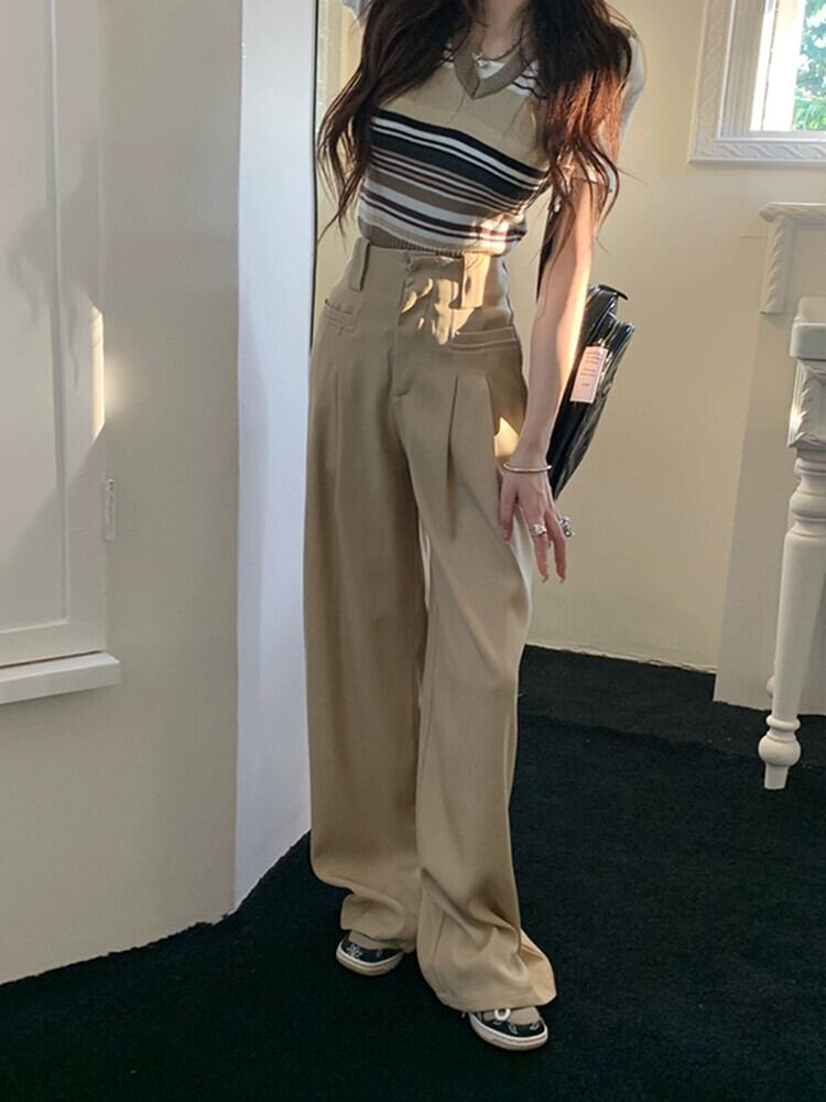 ドレープ感ワイドレッグスーツパンツレディース2023年夏新バージョンハイウエスト着痩せデザインセンスオールマッチゆったりロングパンツ サマー 夏物 missk12865639492