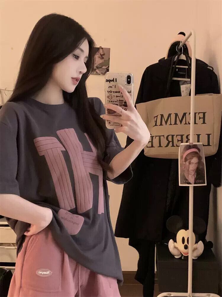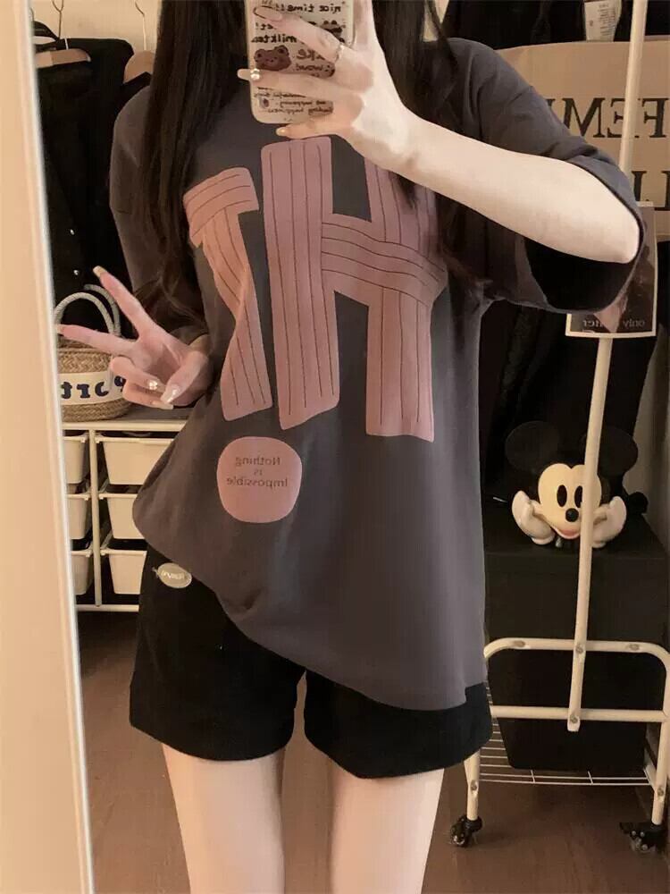 アメリカンレタープリント半袖Tシャツ夏の新しい怠惰なスタイルルーズオールマッチミッドレングスアインスタイルトップシック サマー 夏物 missk49402925038