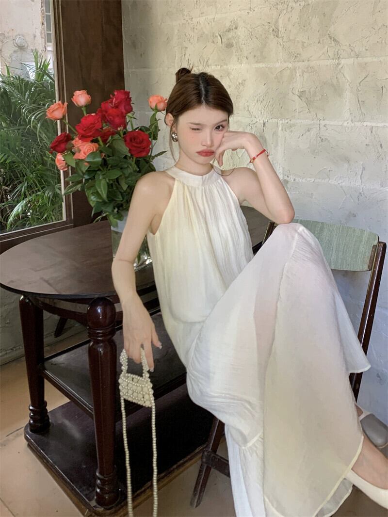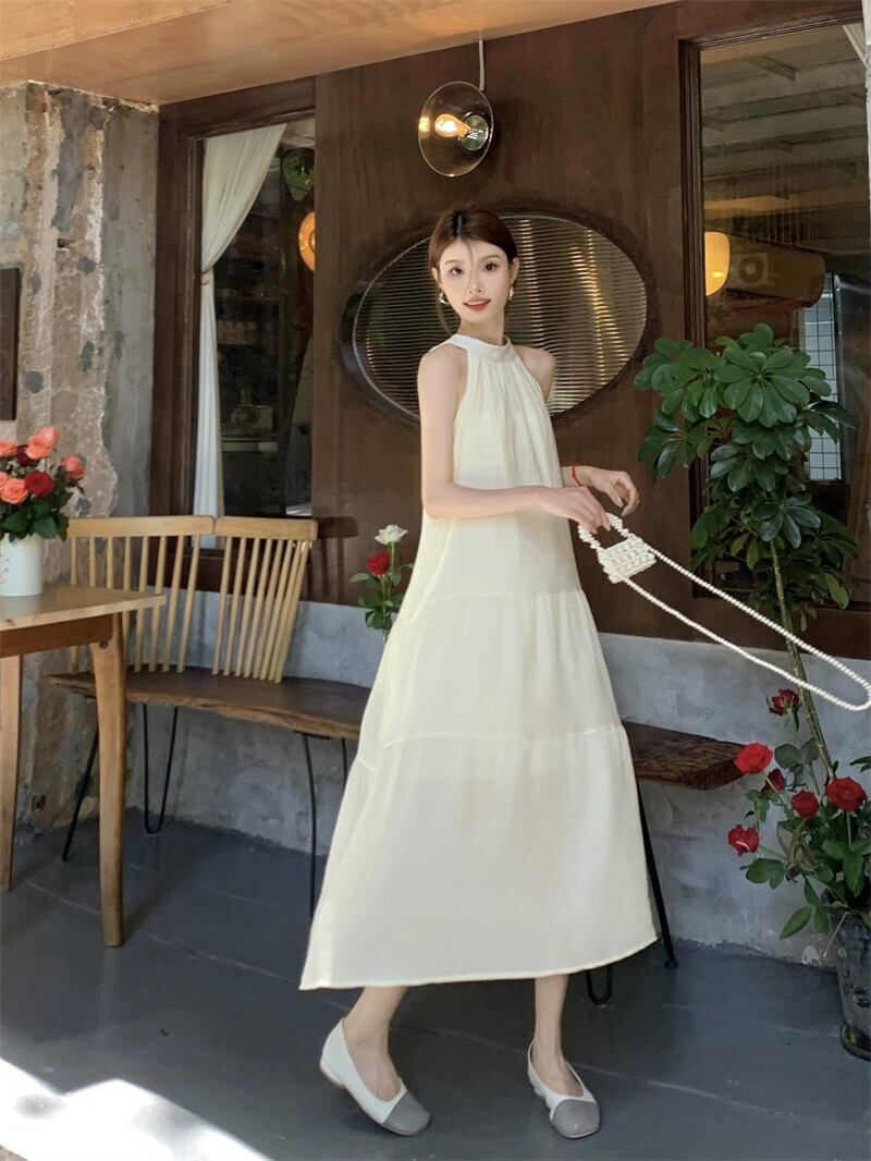 フレンチホリデースタイルホルターネックシフォンドレス夏の新作高級感薄手アウターAラインロングスカート婦人服 サマー 夏物 missk5786194753