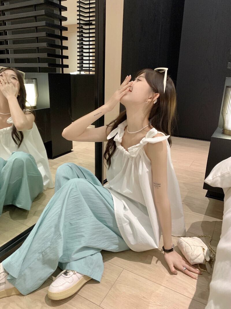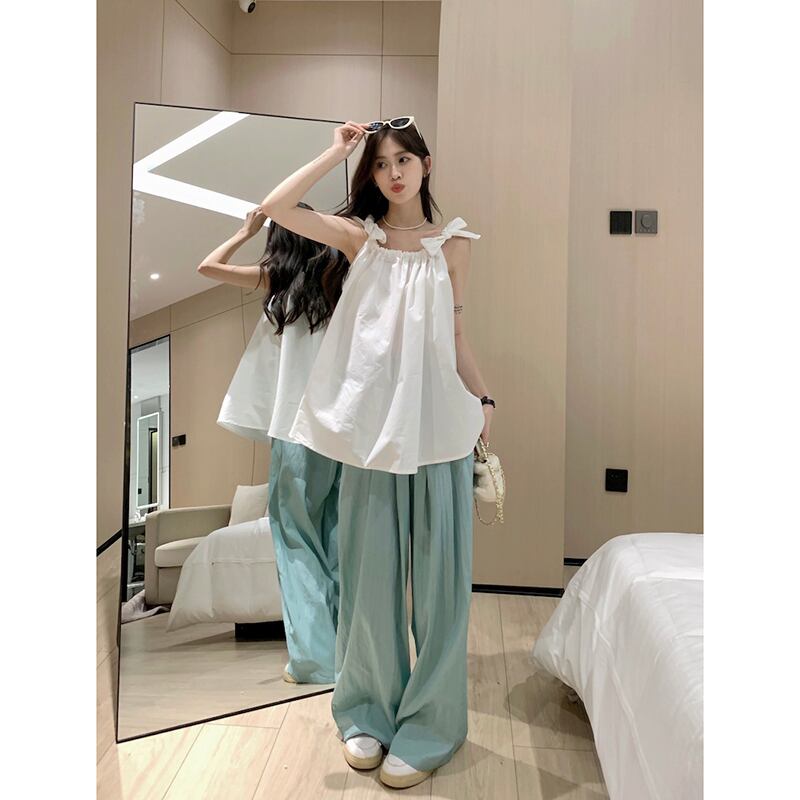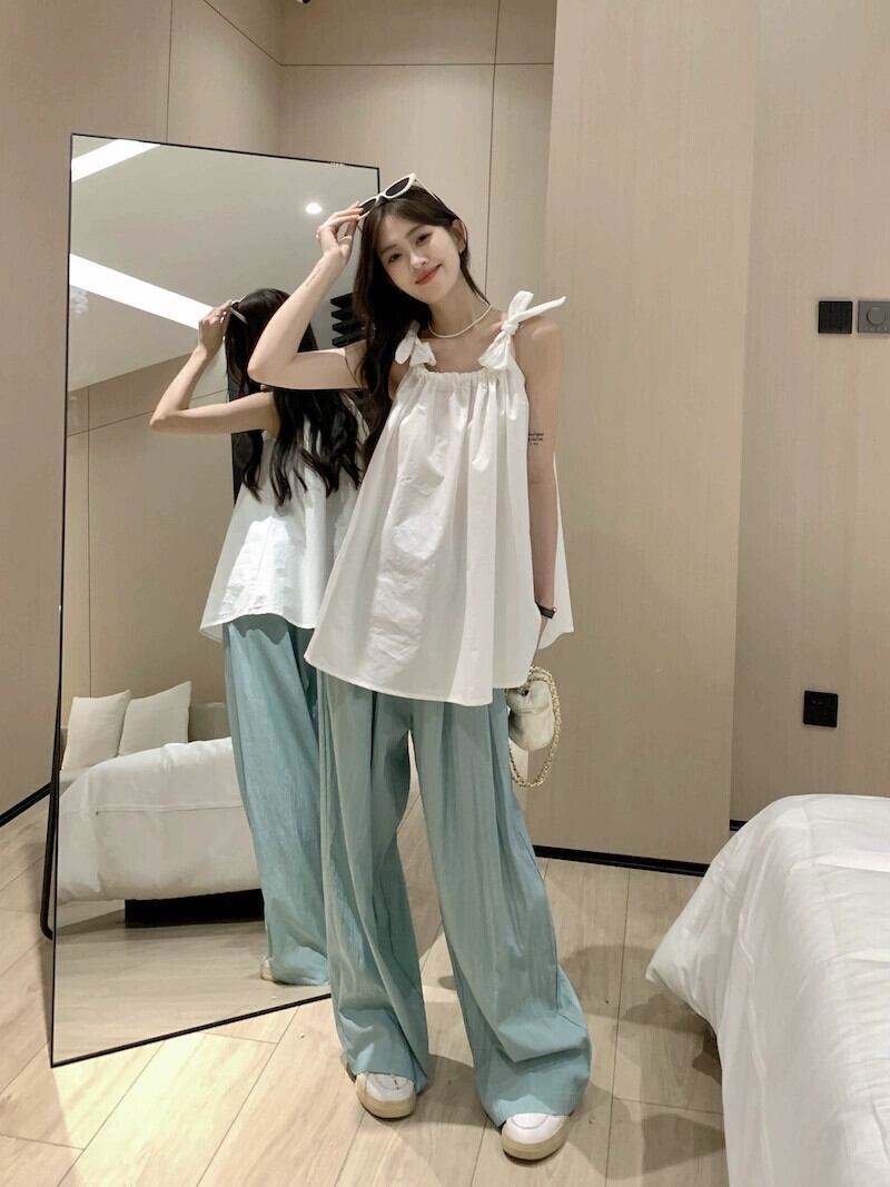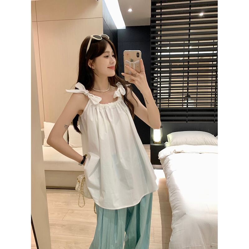 Eign スタイル巾着白スリング夏の新バージョンルーズファッションストラップデザイン感覚の上着ベストトップ女性 ホワイト サマー 夏物 missk86007911426
