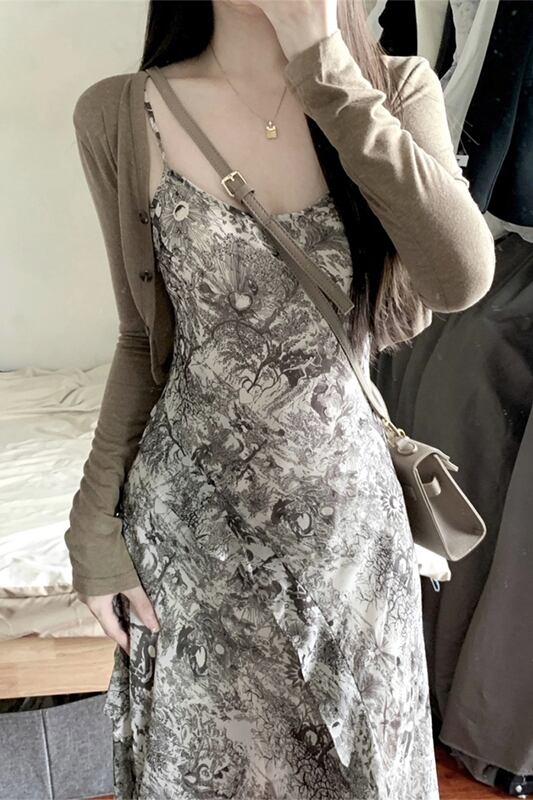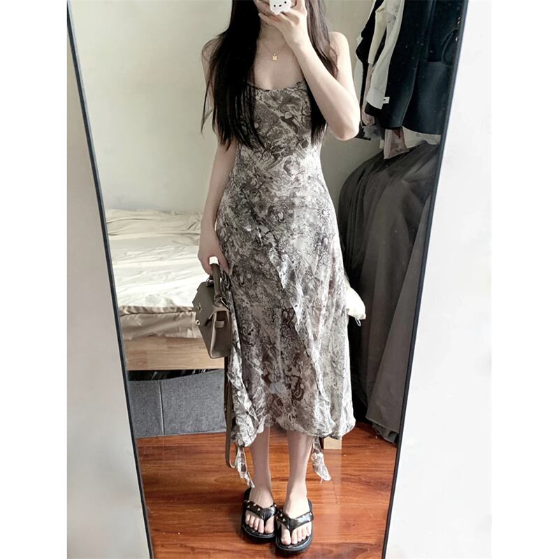 中国風水墨画スリングドレス夏の新しいレトロなウエストデザインセンス不規則な休日ドレス女性の潮 サマー 夏物 missk74648681432