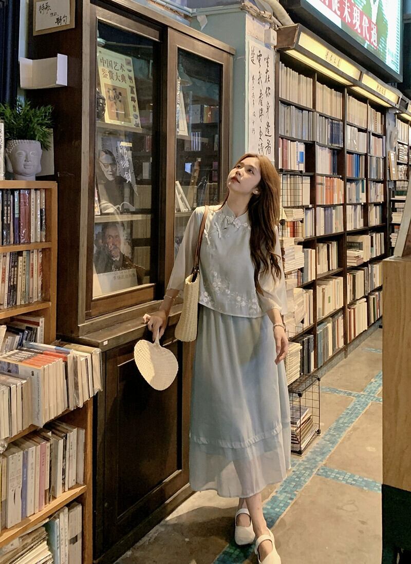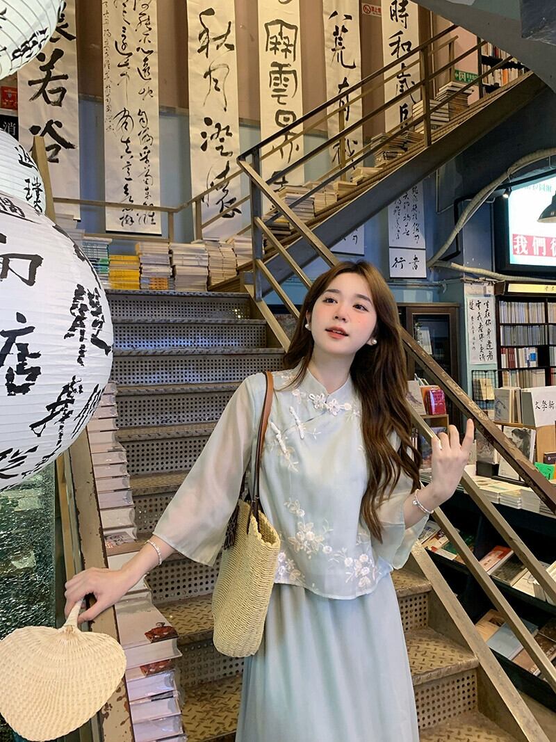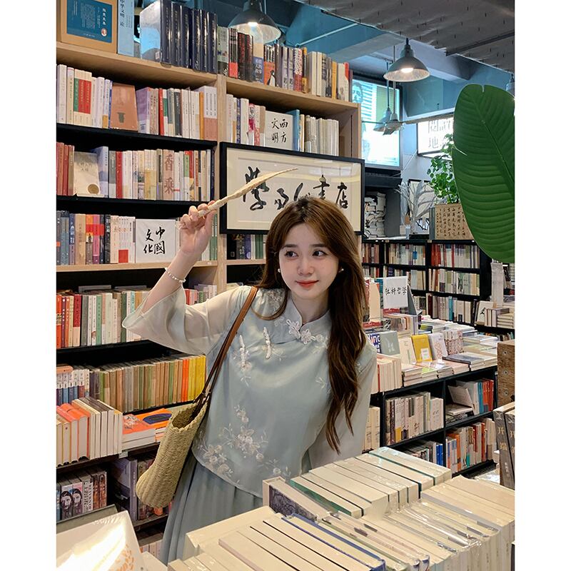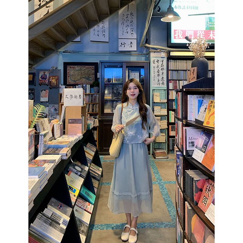 中国風国民風ボタン半袖シャツトップハイウエストアインスタイルスカート女性の夏の新しいファッションツーピースセット ハイウェスト サマー 夏物 missk56439804682