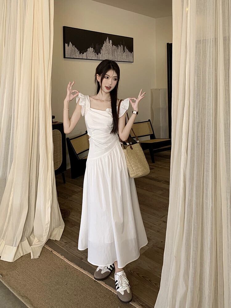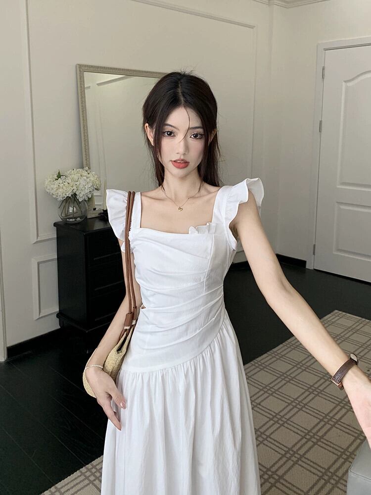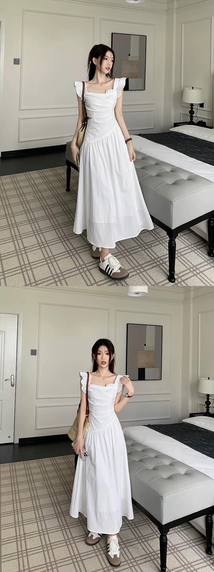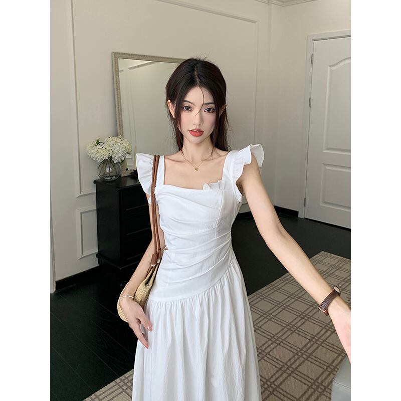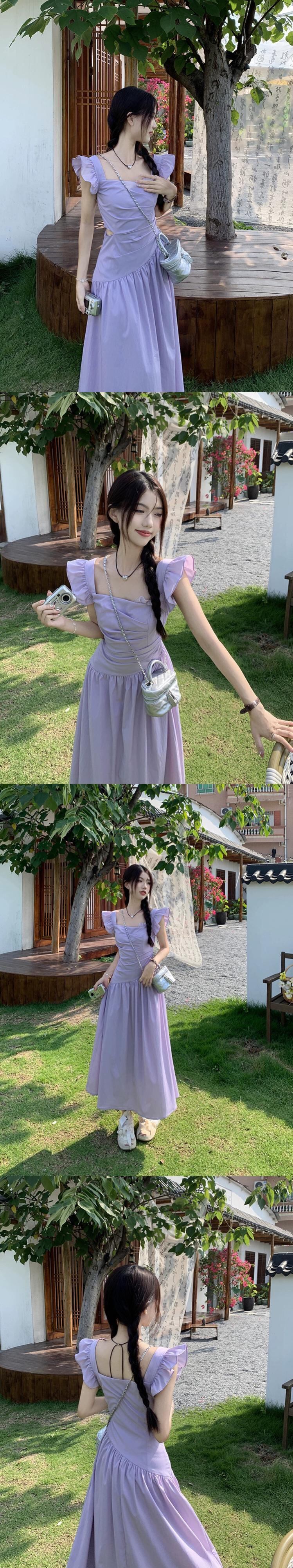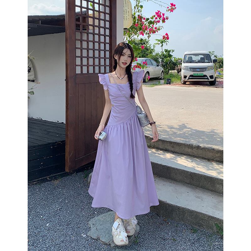 初恋パープルフライングスリーブドレス女性の夏のウエストスキームくり抜き塩と甘いロングスカートトレンディ 大人ガーリー スウィート キュート カジュアル サマー 夏物 missk95064603932