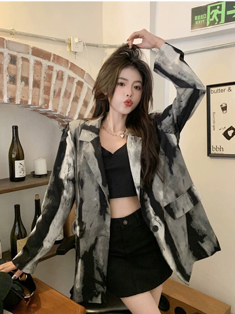 レトロな香港風絞り染め長袖シャツレディース 2023 夏の新作ショートデザインソルトシックカーディガン ロング サマー 夏物 missk69449664802