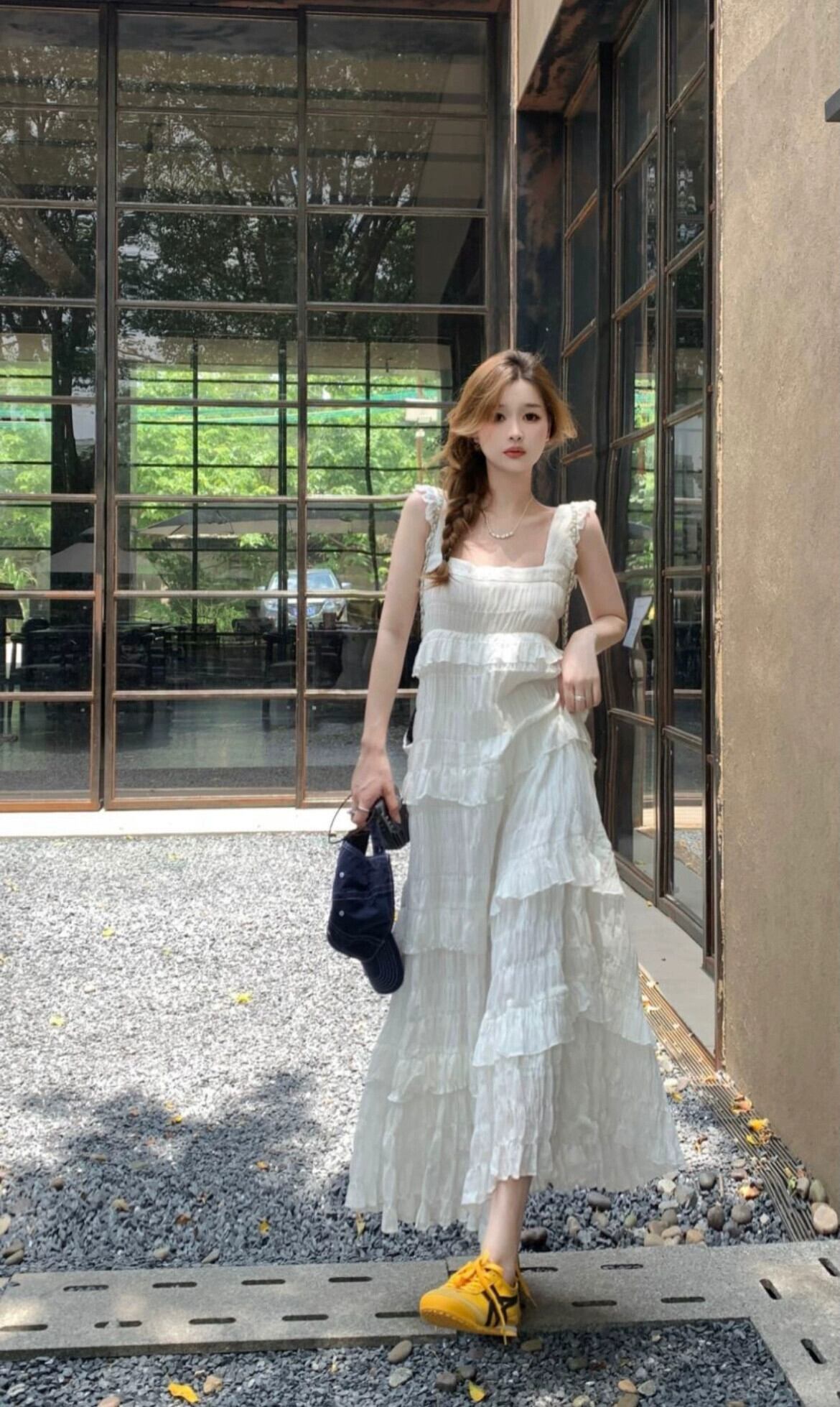 スクエアカラーフリルドレス女性の夏の新しいフレンチデザイン気質ニッチスプライシングスーパーフェアリーノースリーブドレス サマー 夏物 スクウェア missk1413279009