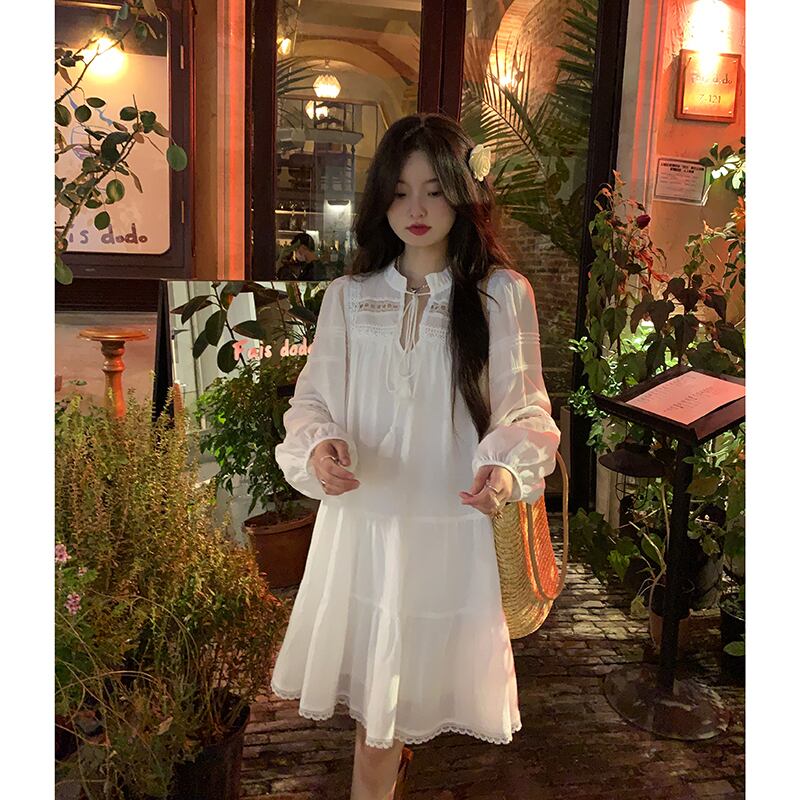 スーパーフェアリーレース中空ウエスト人形プリンセスドレス夏の新しい長袖休暇フェアリースタイルデザインドレス ロング サマー 夏物 missk48695956224