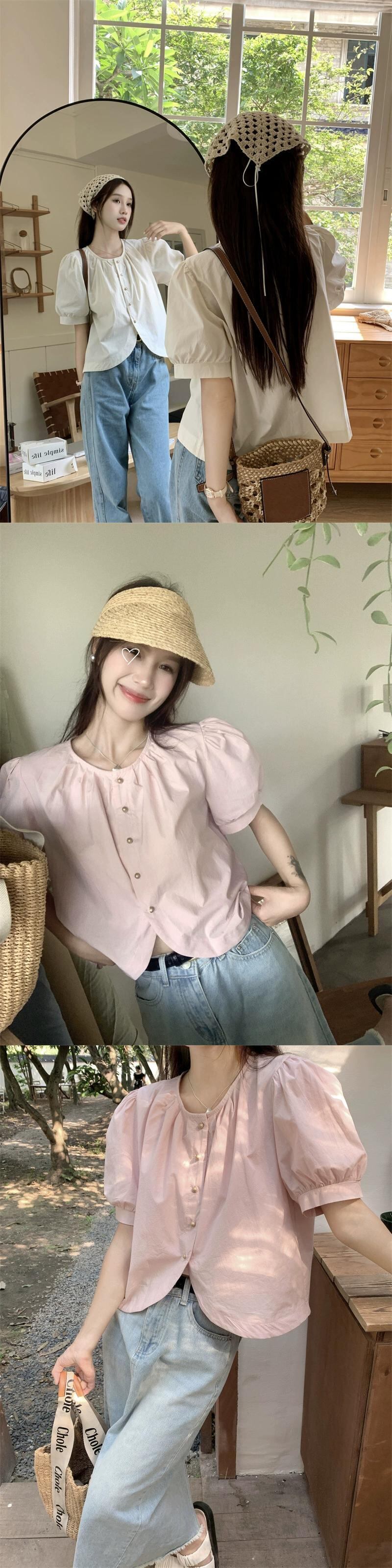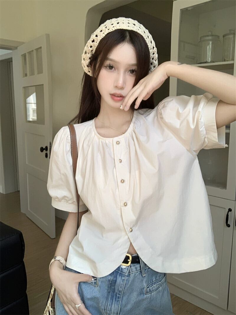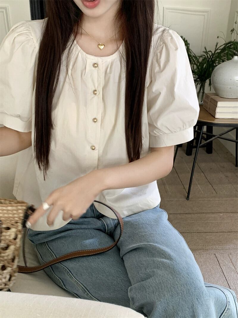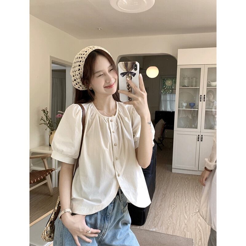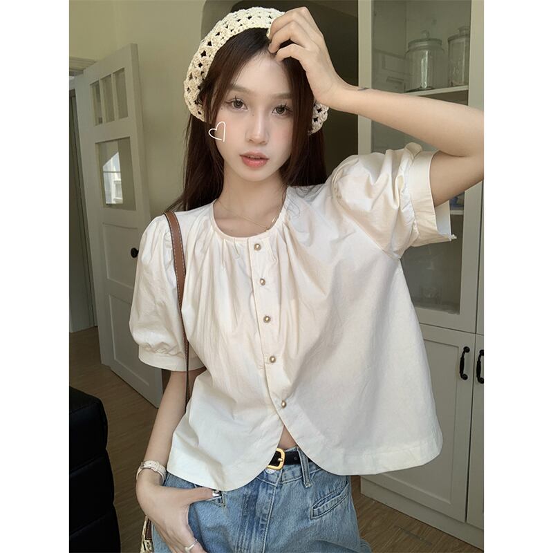フレンチバブル半袖シャツレディース夏新レトロデザインセンスシングルブレストシックショートシャツトップ潮 サマー 夏物 missk35976027860