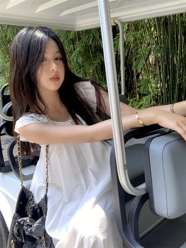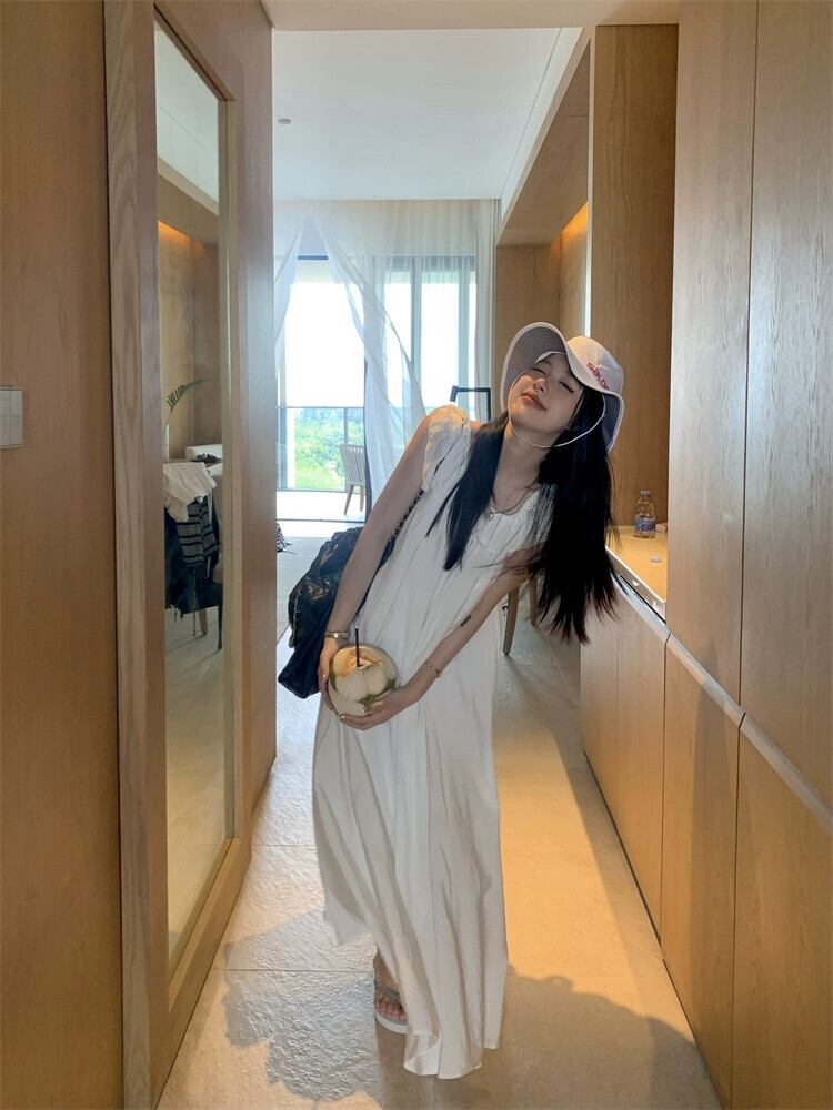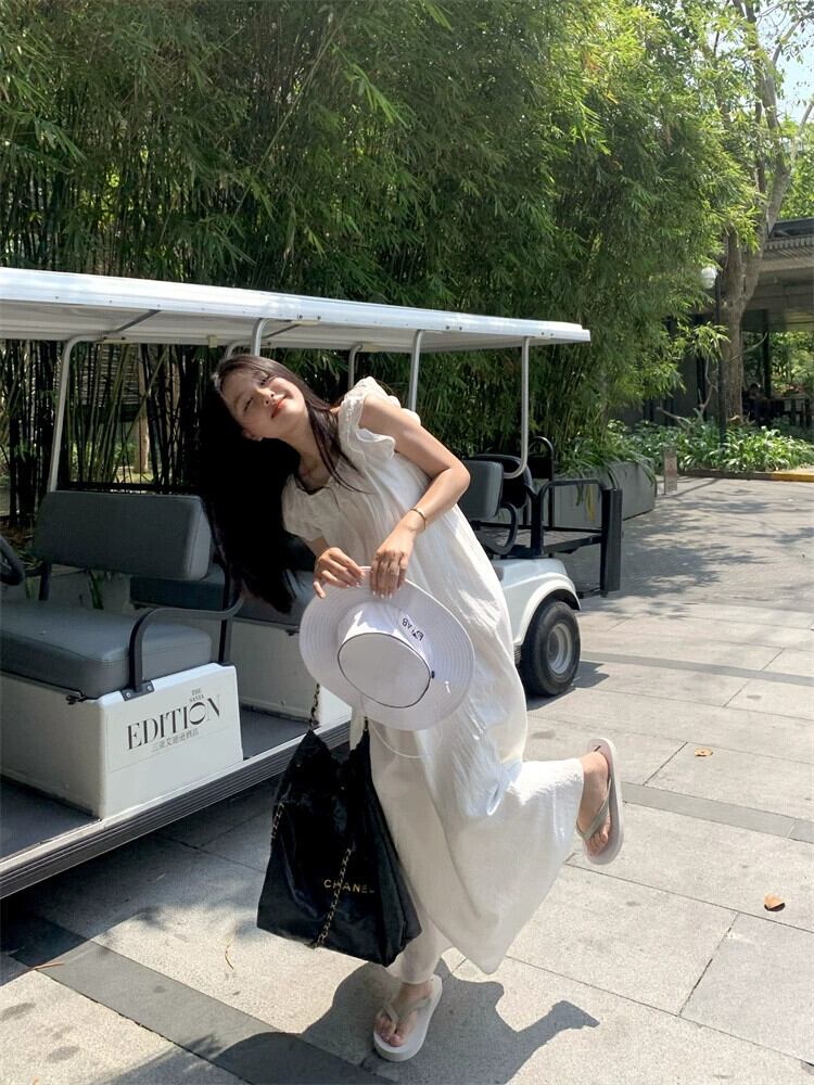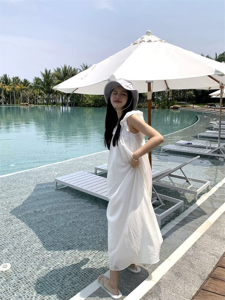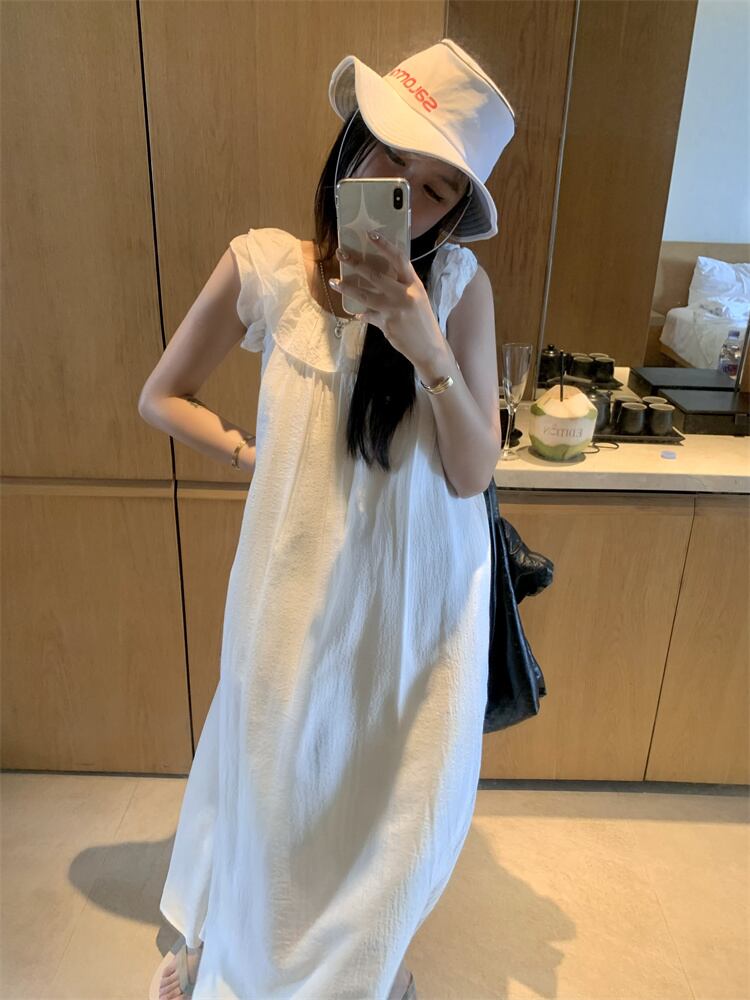 シックなフリルフライングスリーブドレス女性夏のレース感覚白ロングスカート ホワイト サマー 夏物 missk14114630877