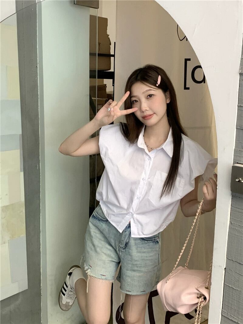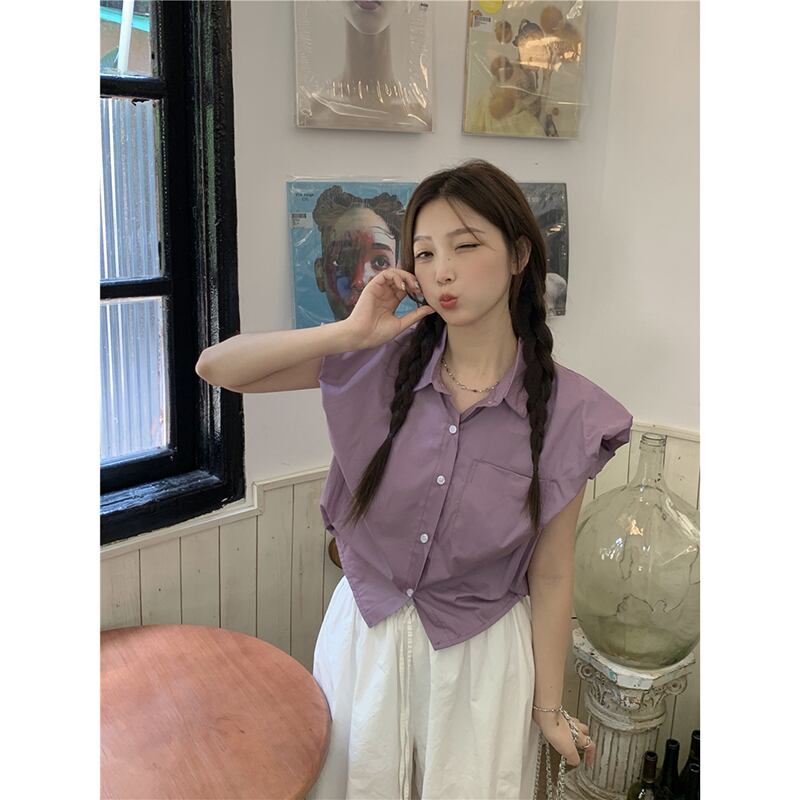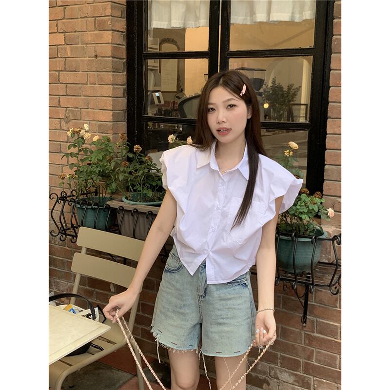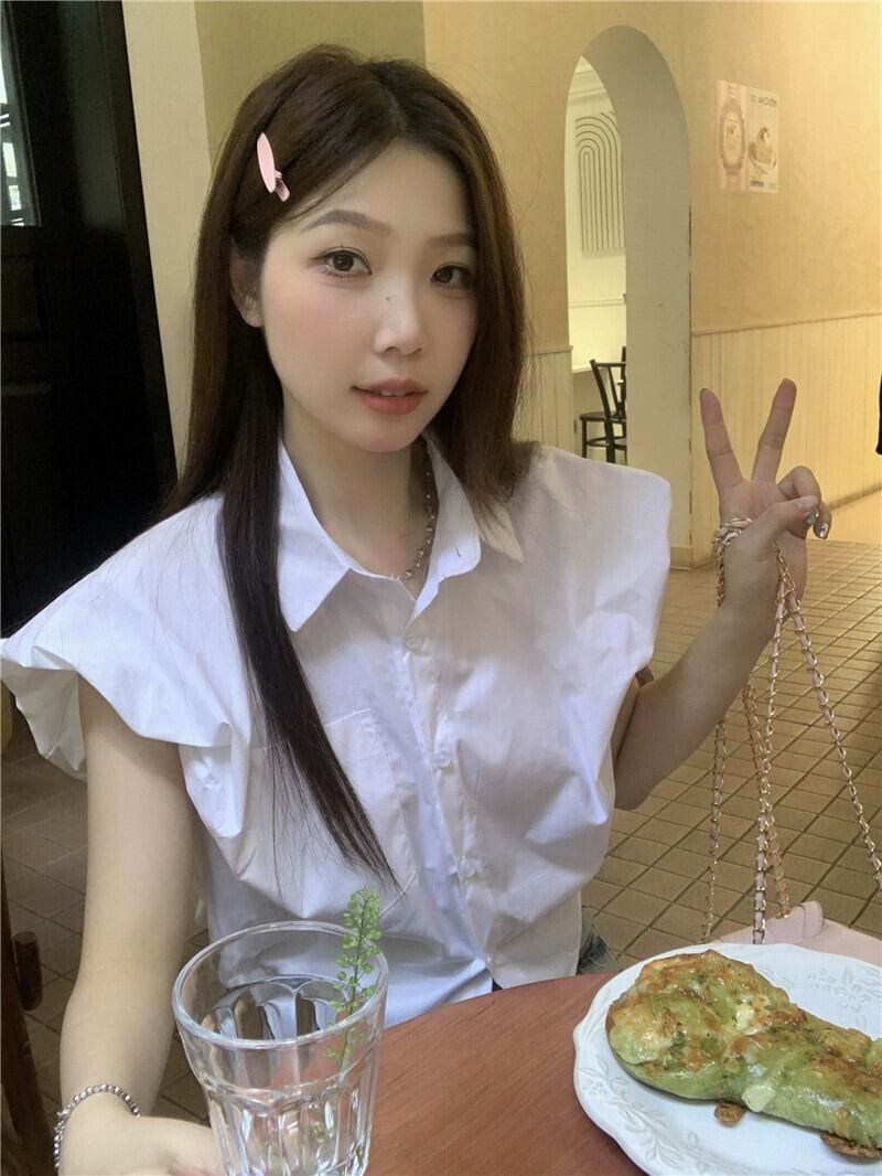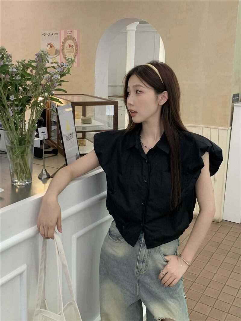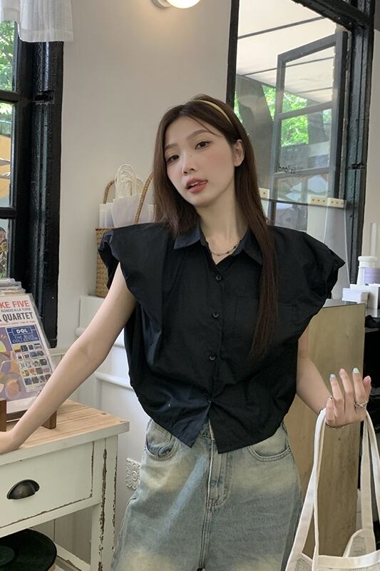 センスレトロ黒小さなフライングスリーブシャツ夏の新しいシックなニッチショートオールマッチ気質トップ婦人服 ブラック サマー 夏物 missk27251221259