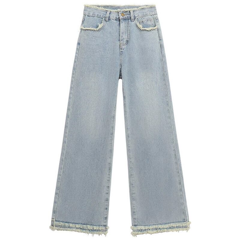 ローエッジデザインライトブルージーンズレディース2023年夏新作レトロハイウエストスリムワイドレッグストレートパンツ ハイウェスト サマー 夏物 ワイドパンツ missk93271286402