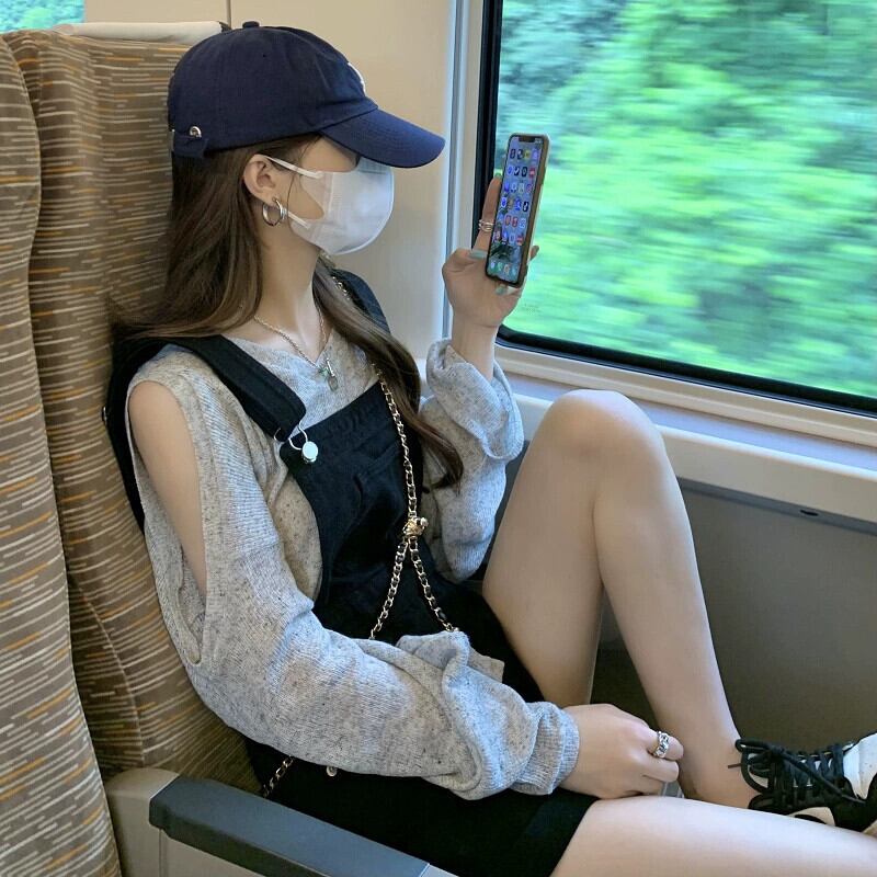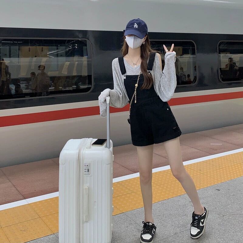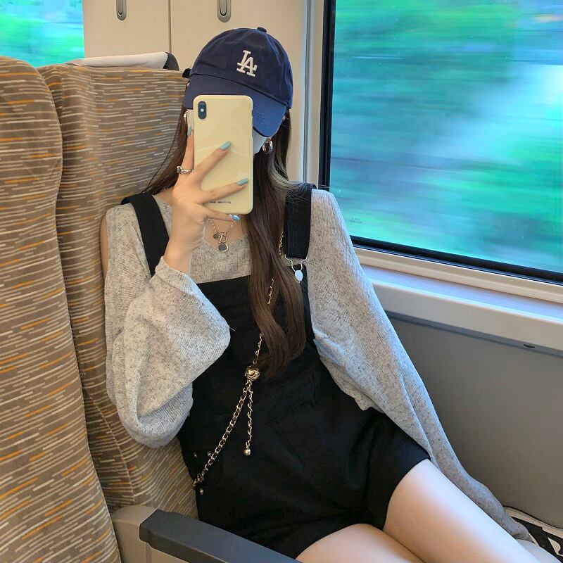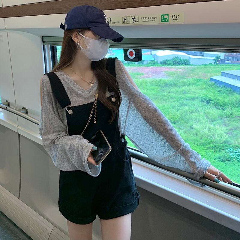 オフショルダー薄い長袖日焼け止めシャツ + ワイドレッグビブショーツ女性の夏の 2023 新しいファッションスーツ ロング サマー 夏物 ブルマー missk12013161570