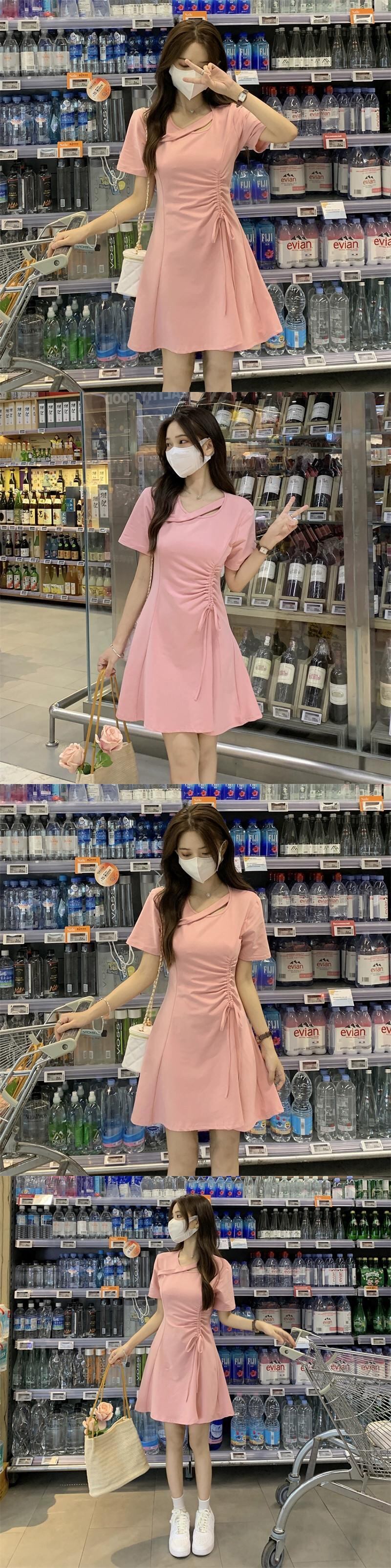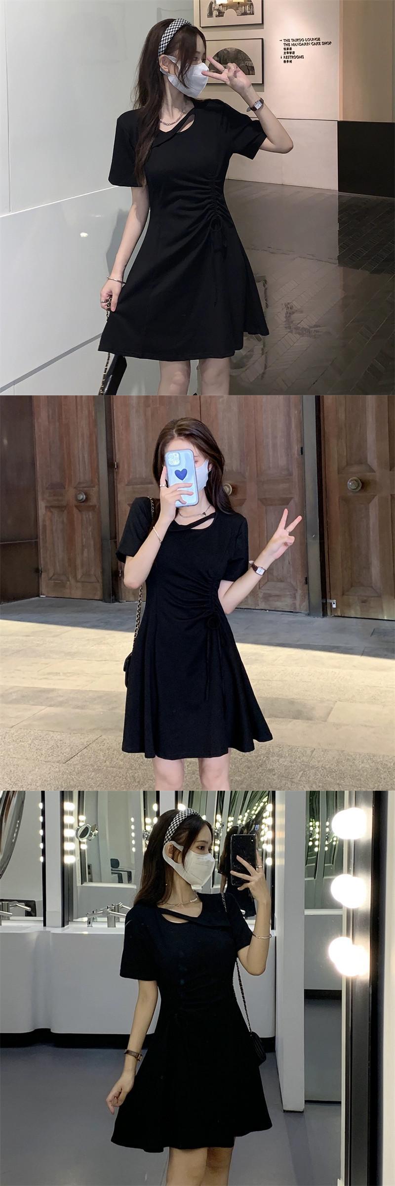 シャーリング半袖ドレスレディース 2023 夏の新バージョンデザインセンスウエスト痩身スリムふわふわリトルブラックドレス レッド サマー 夏物 missk88872731043