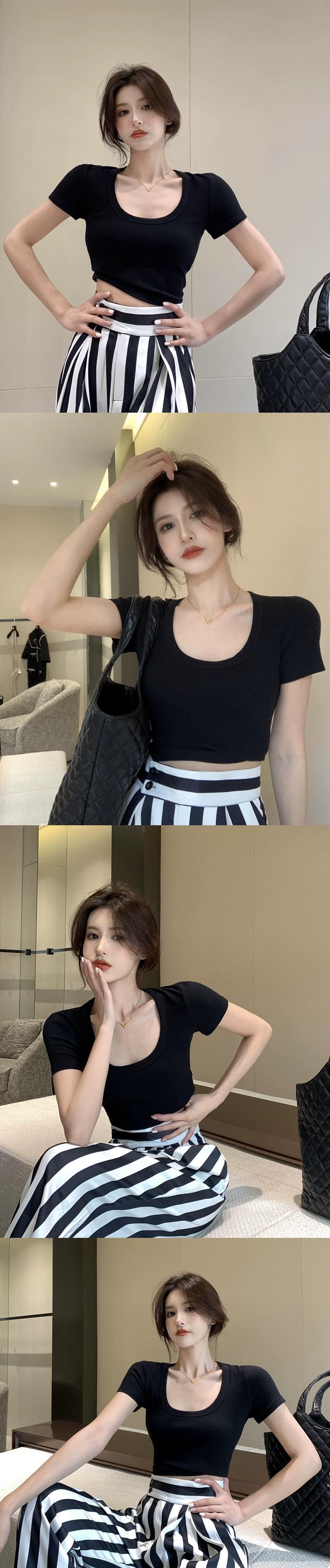 U ネックフロントショルダー Tシャツレディース夏バージョン 2023 新しいスリムフィット細い糸弾性インナーウェア半袖トップ エラスティック 伸縮 サマー 夏物 missk11616163833