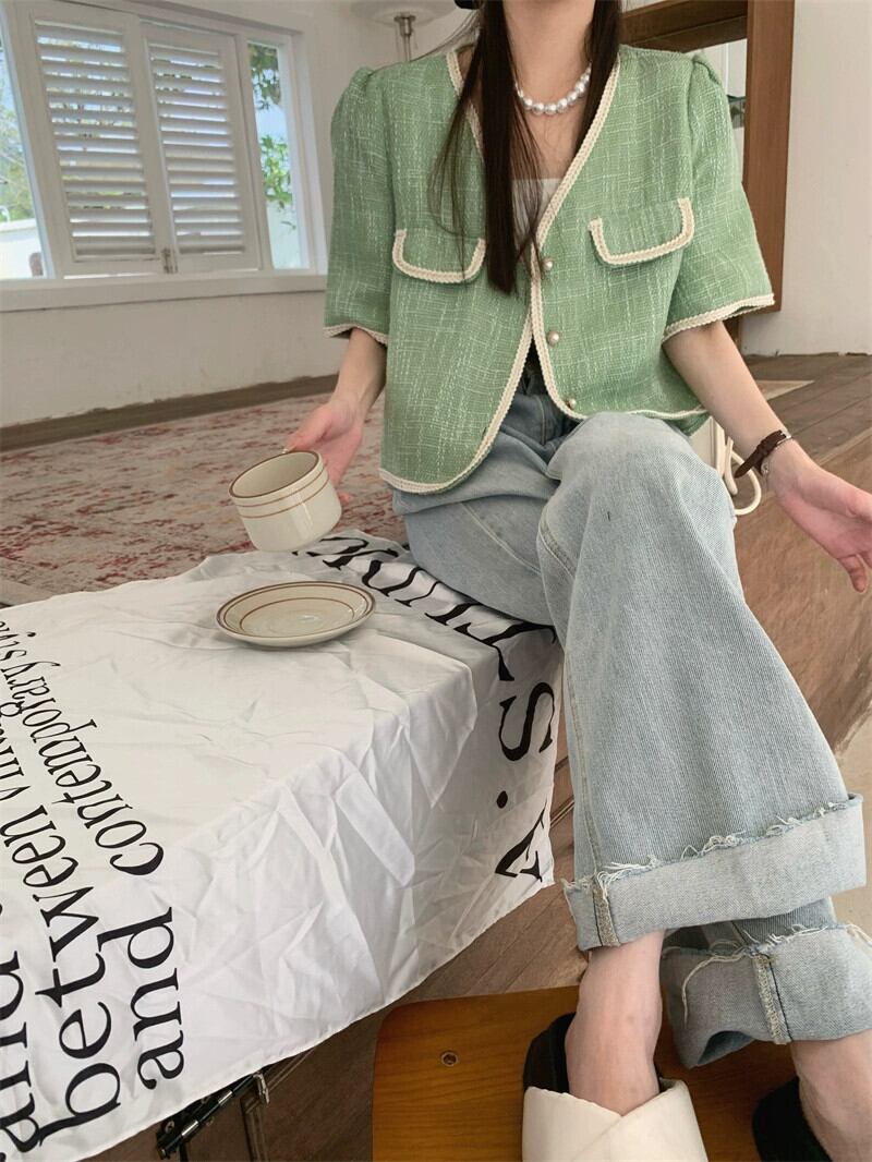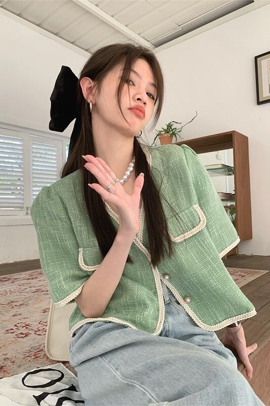 フレンチスタイルの小さな香りのデザインセンスショートジャケット2023年夏新しい気質とシックなラッピング半袖トップス婦人服 サマー 夏物 missk85804507447