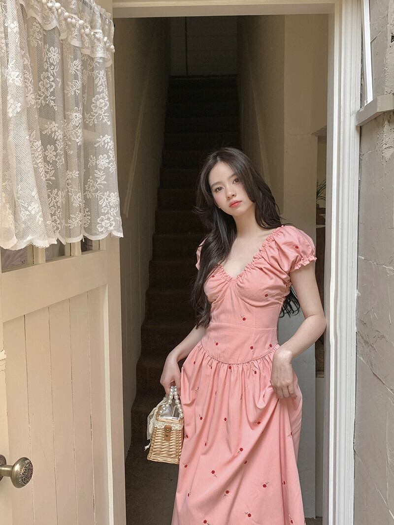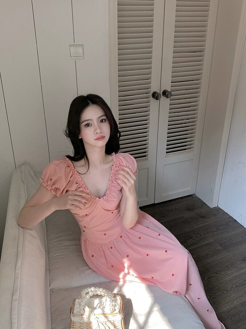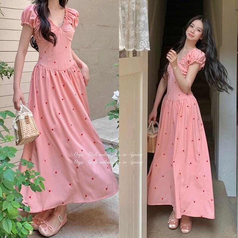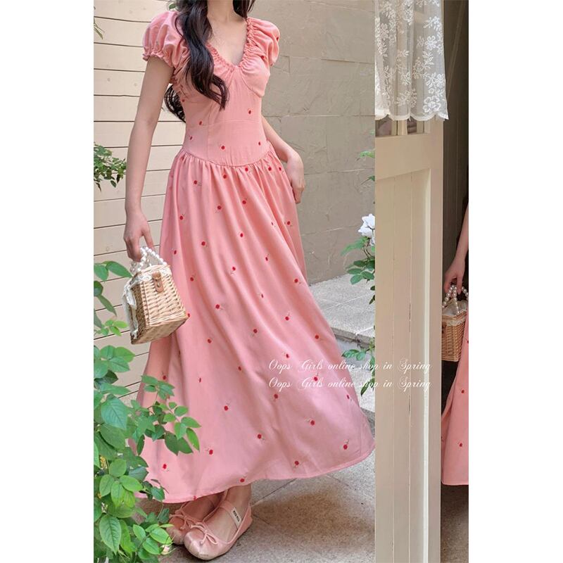 夏スタイル 2023 新しい優しいスタイルシンプルなプリーツウエストロングデザインパフスリーブドレス女性の潮 サマー 夏物 missk50056191272