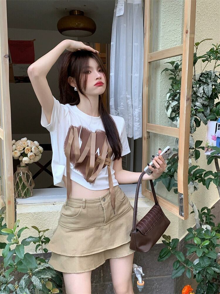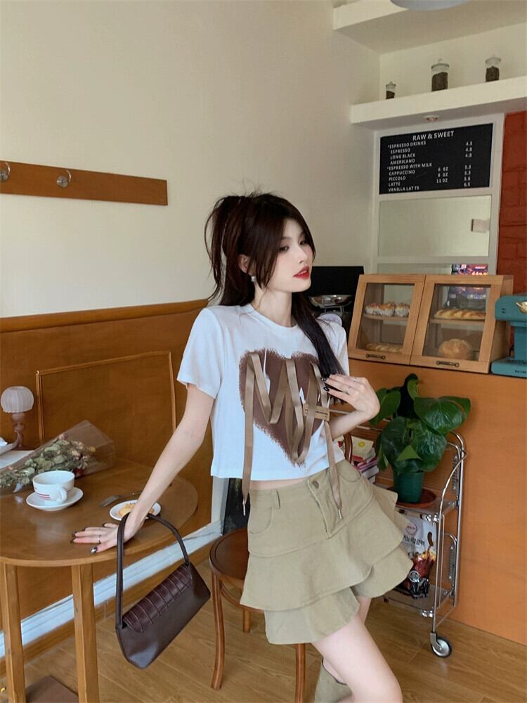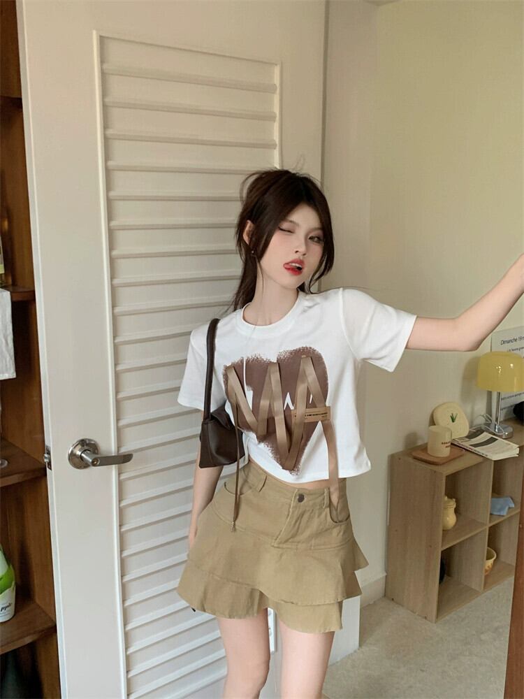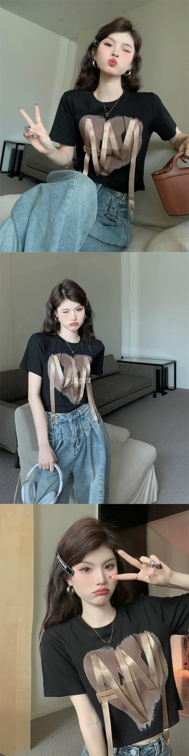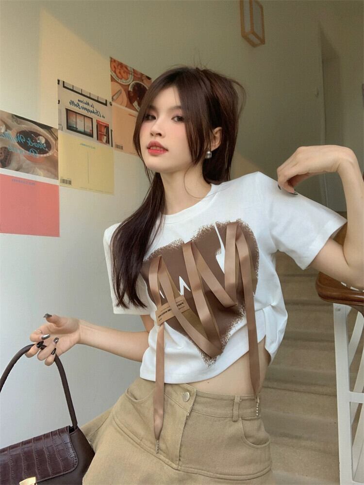 ラブレター半袖Tシャツレディース夏バージョン2023新デザインセンス重工業ストリーマーショートセクションスリムトップ サマー 夏物 missk81051019985
